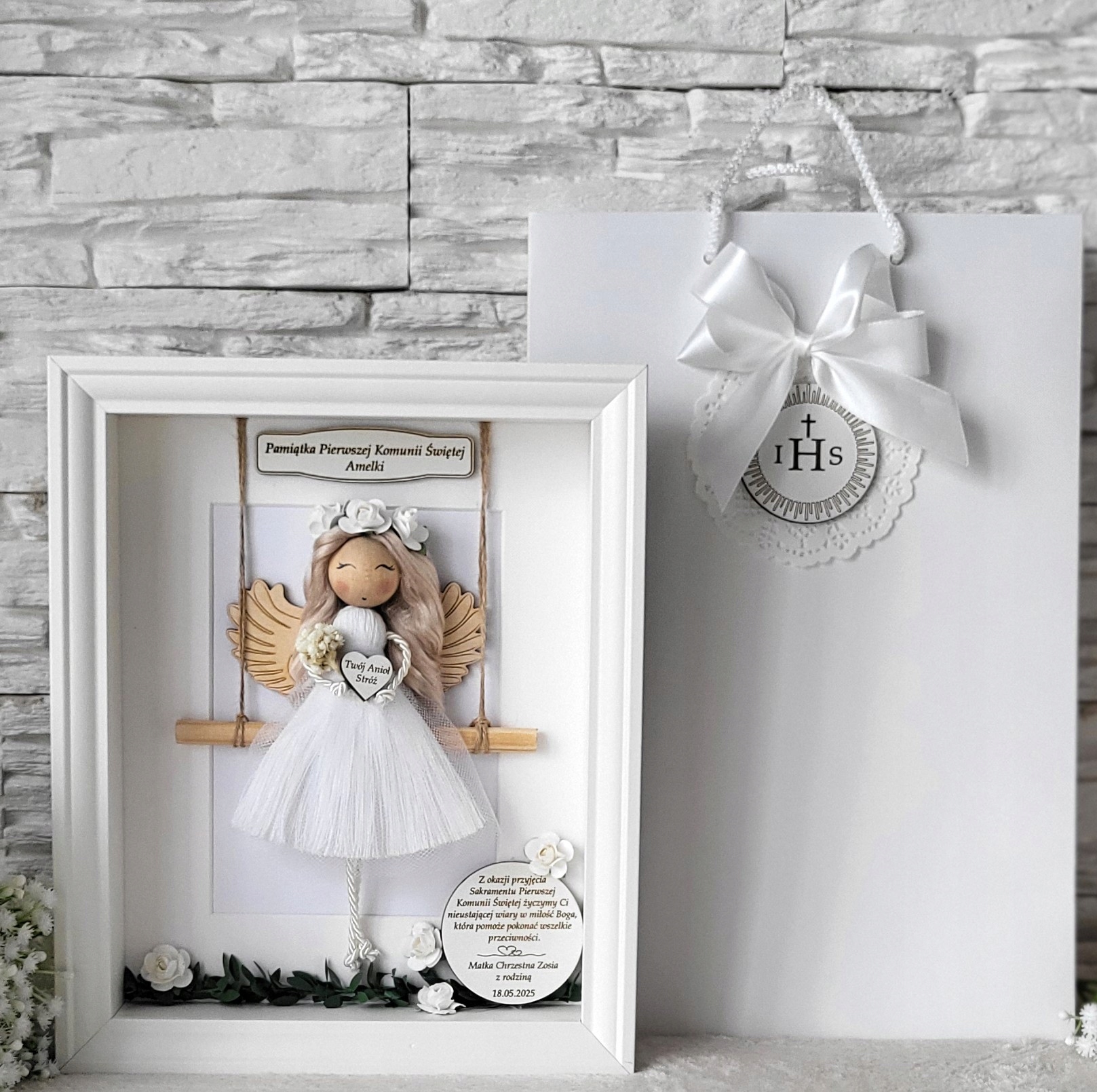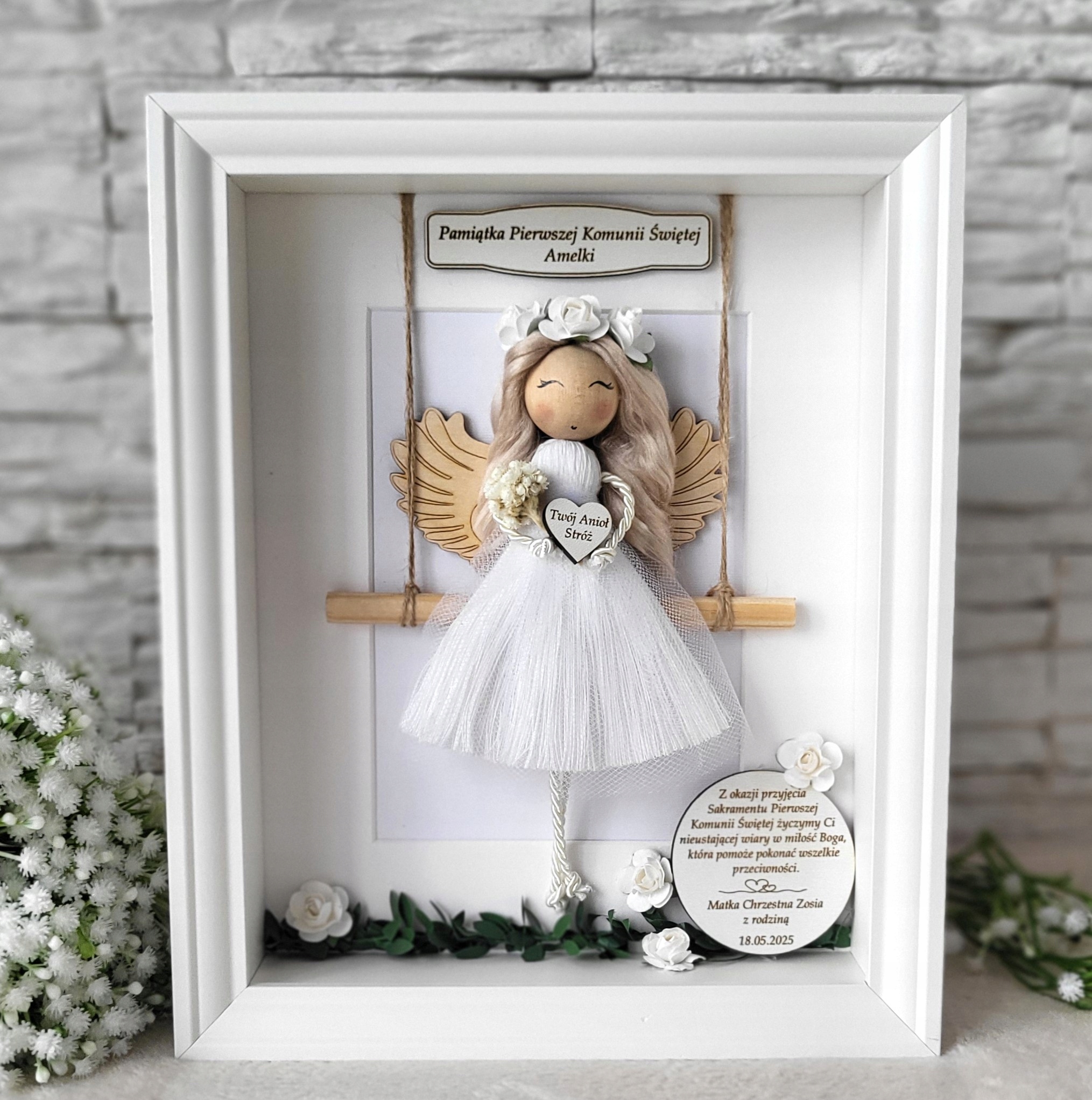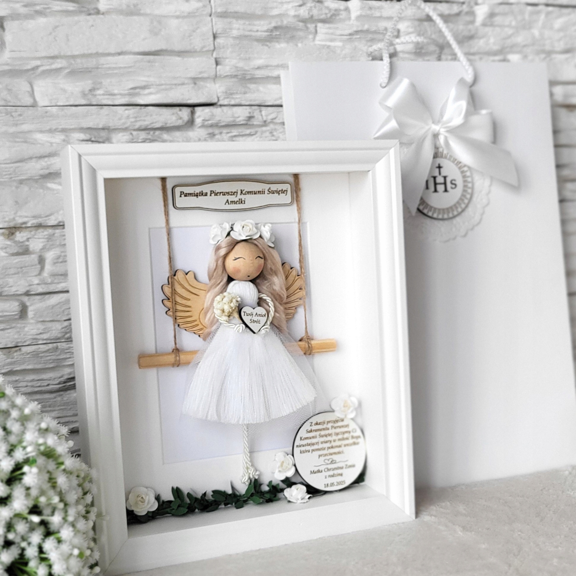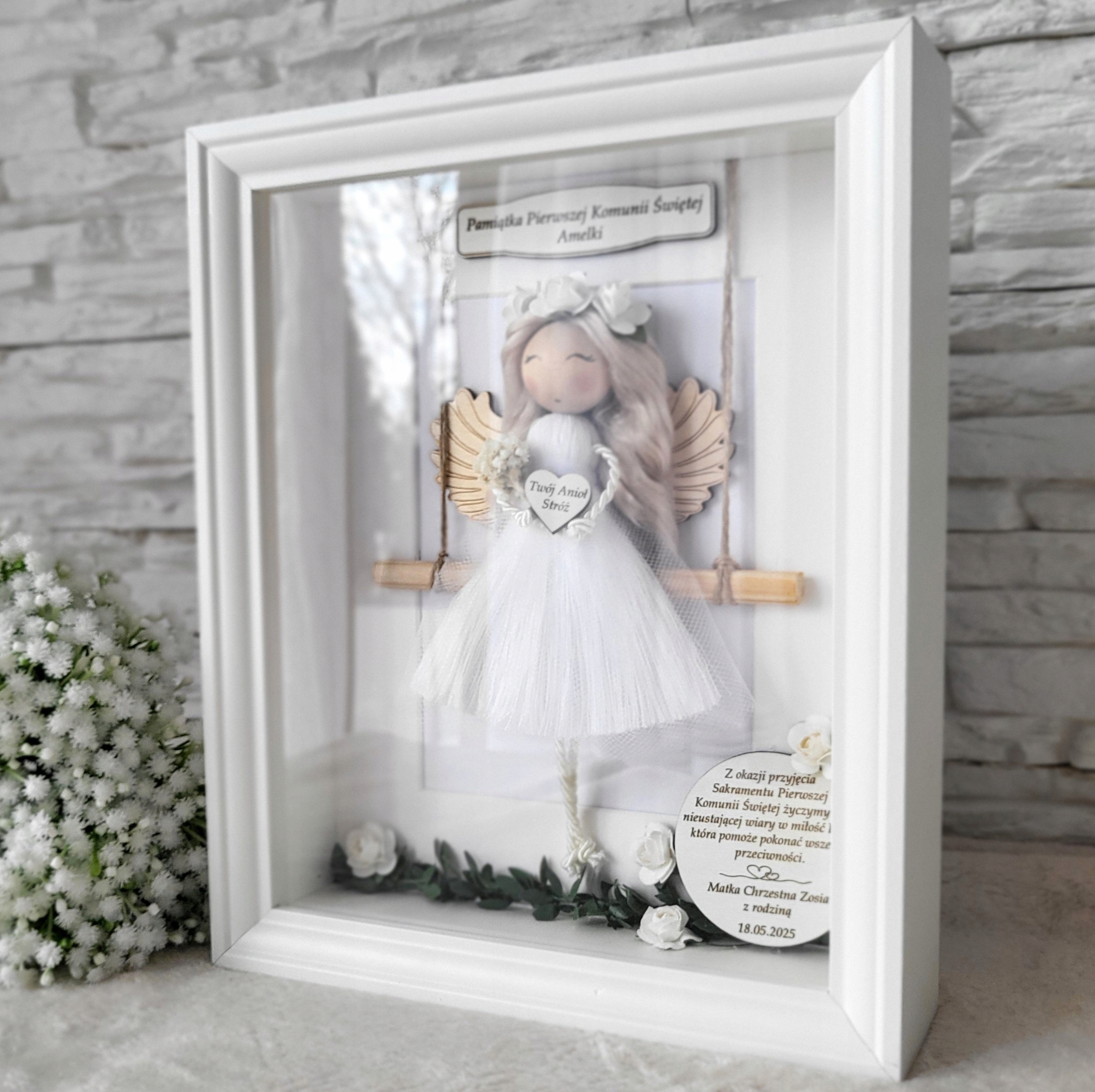 Macram Angel в 3D -кадре сувенир для крещения подарочный пакет Carmination h1>