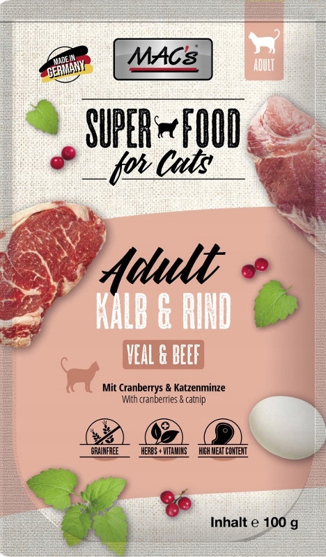 Mac's - Cat Kalb & Rind - телятина, говядина и клюква - 100г