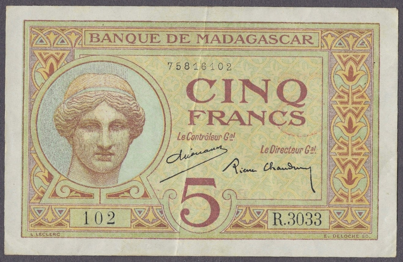 Мадагаскар - 5 франков 1937 года (VF-XF)