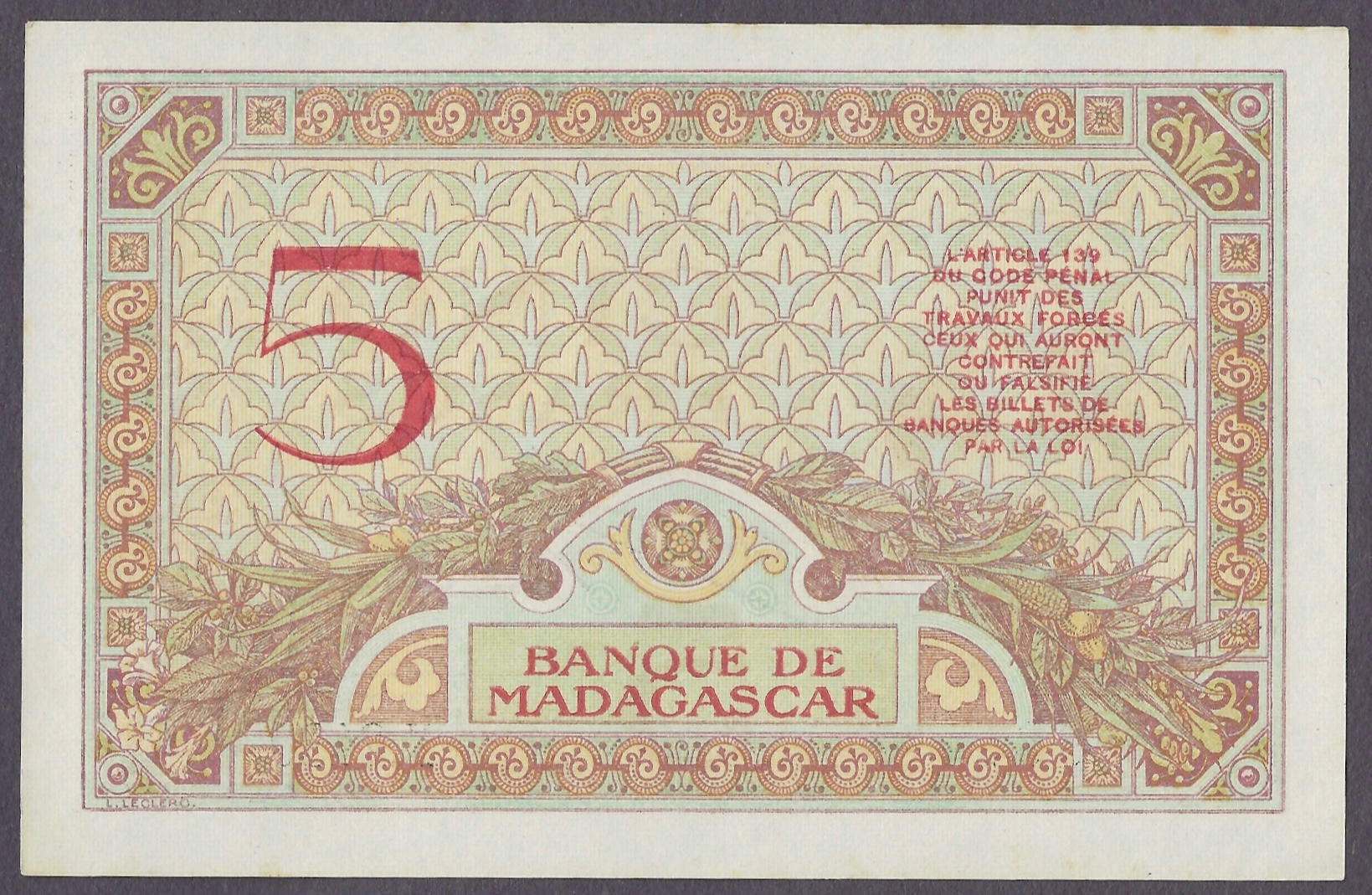 Madagaskar - 5 franków 1937 (XF-aUNC)