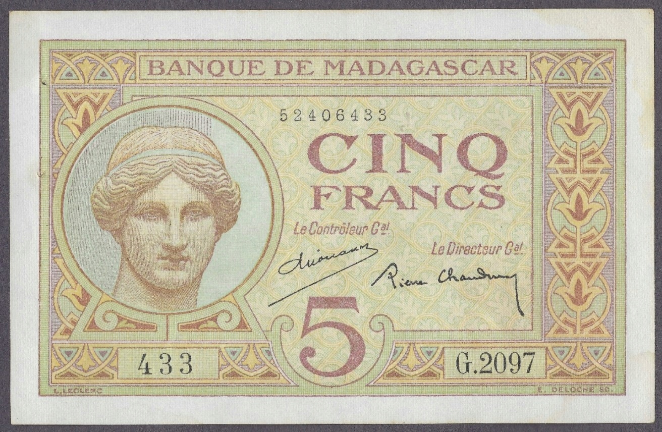 Madagaskar - 5 franków 1937 (XF-XF+)