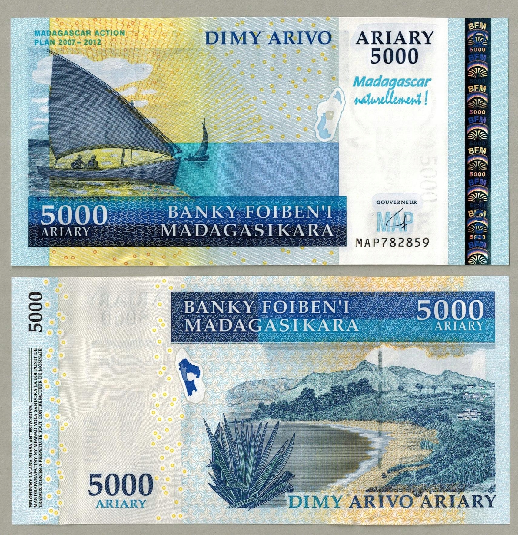 Мадагаскар 5000 Ariary 2007 2008 P-94 UNC Околиці.