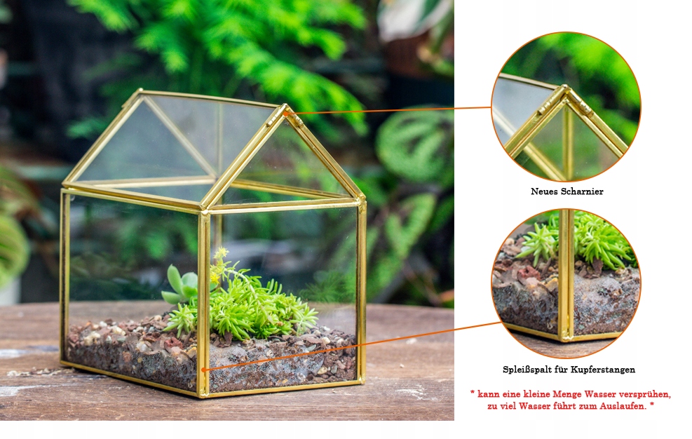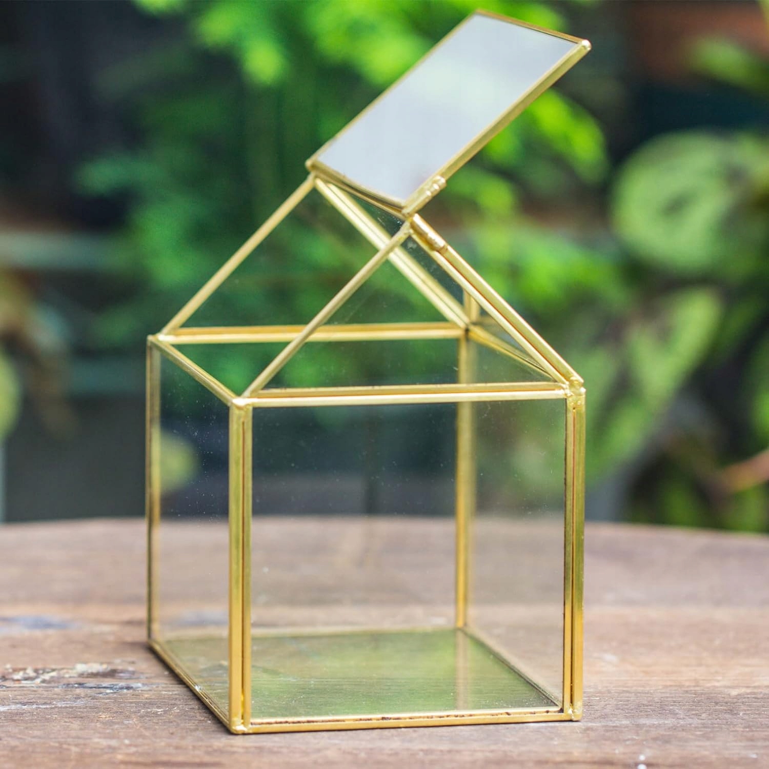 NCYP 15,5x11x16 см Небольшой стеклянный террариум геометрической формы с крышкой, контейнер для растений ручной работы, золотой горшок для растений, украшение для садового стола (без растений, не водонепроницаемый)