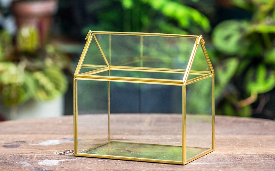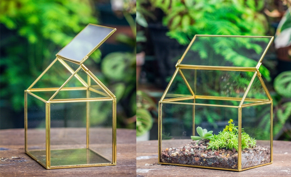 Małe geometryczne szklane terrarium z pokrywką pojemnik na rośliny