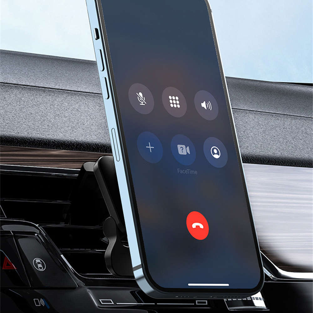 ✅ Автомобильный держатель со встроенным индуктивным зарядным устройством Зарядное устройство поддерживает технологию Mag Safe , поэтому оно совместимо со всеми устройствами Apple, оснащенными этой технологией.