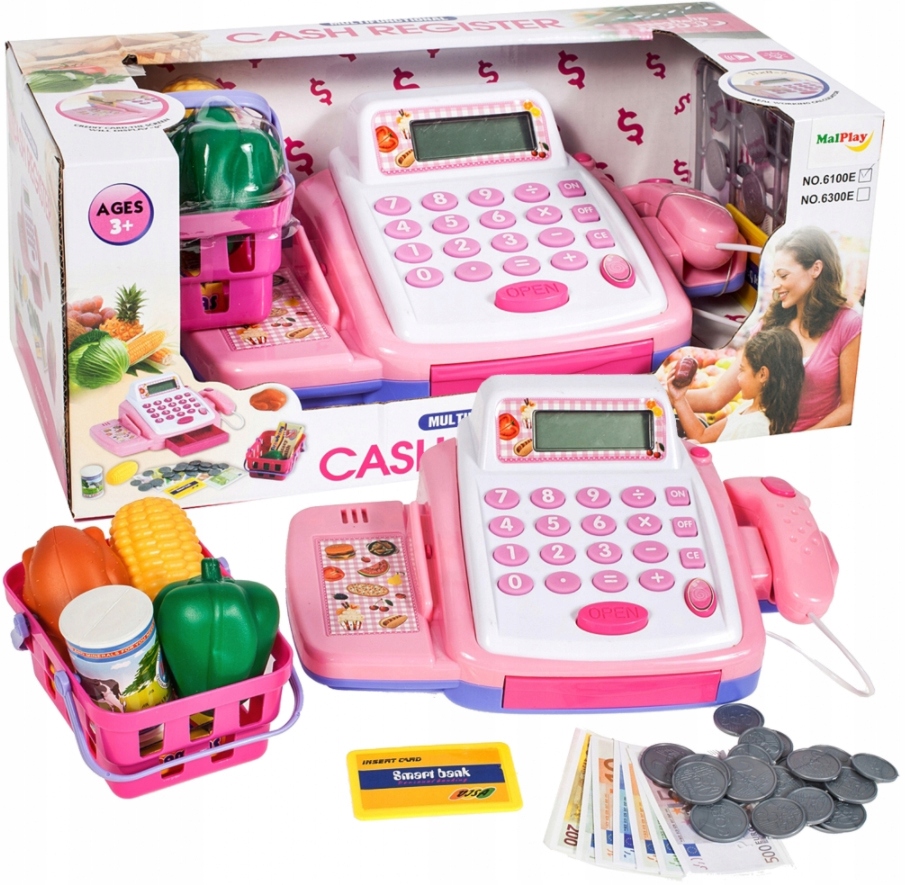 МАГАЗИН КАСОВИЙ АПАРАТ ДИТЯЧИЙ КАЛЬКУЛЯТОР МОНЕТІ ГРОШІ + АКСЕСУАРИ