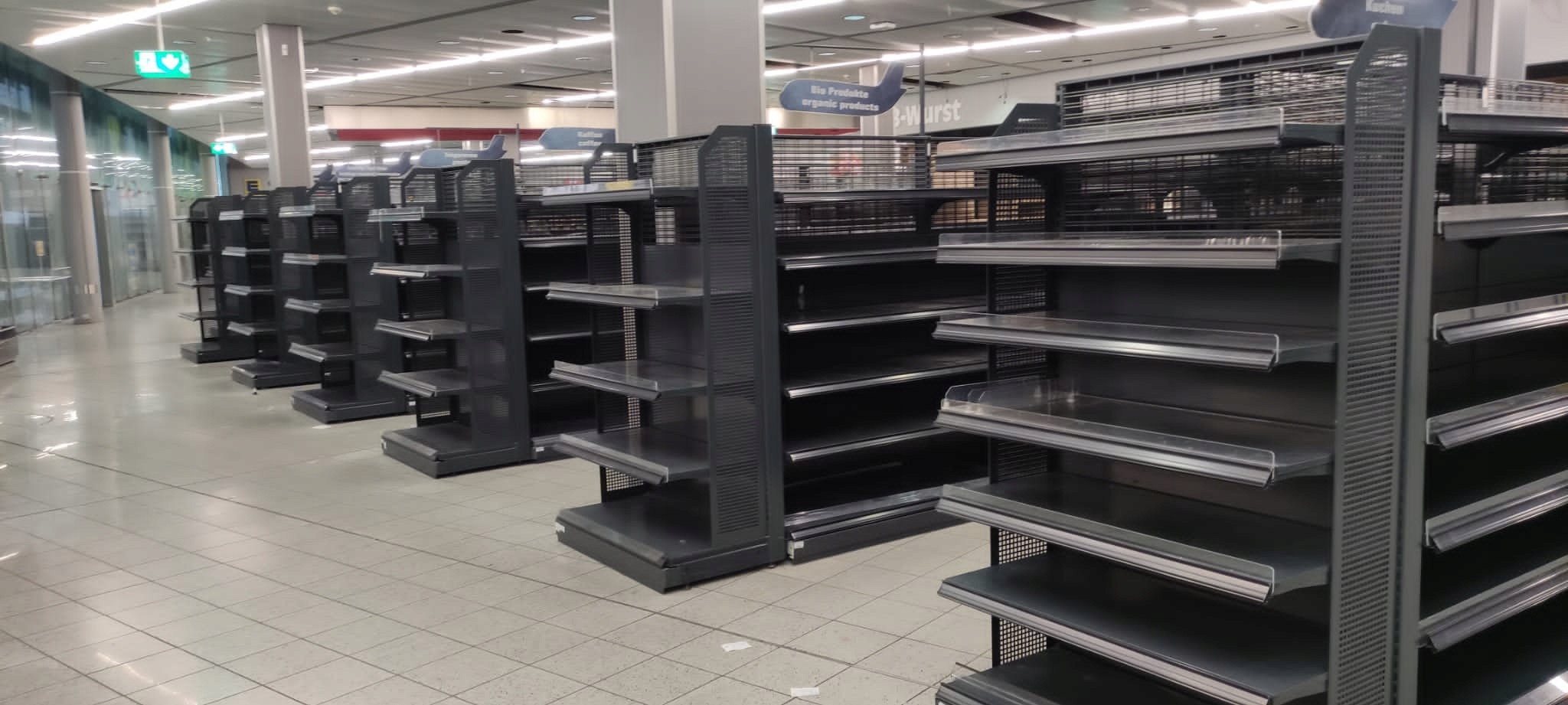 - 1 метр настенных полок = 335 зл., 1 метр гондолы (двусторонняя полка) = 535 зл. - серый 7035