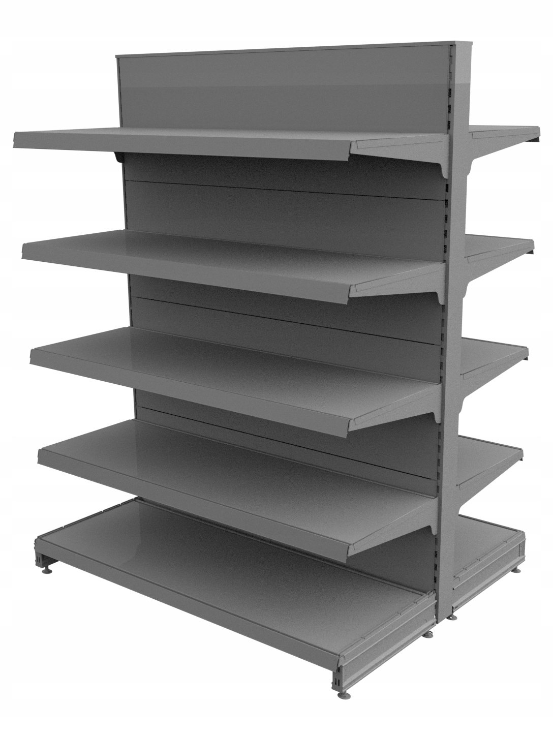 Полка магазинная двухсторонняя, полностью изготовлена из высококачественного металлические профили и листы, покрытые порошковой краской. Каждая полка имеет структурное усиление и может подвешиваться горизонтально или под двумя разными углами. Высота подвеса полок градуирована каждые 5 см.