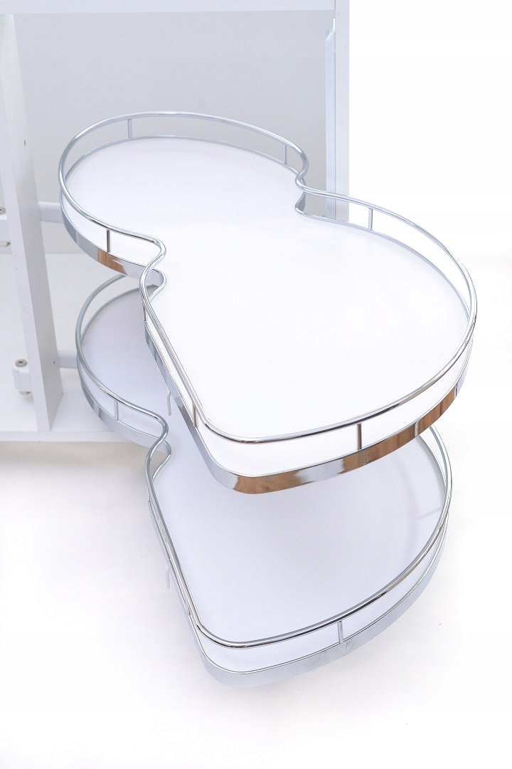 Кухонная система почкообразного типа используется в нижних угловых шкафах. Благодаря этому кухня становится современной и удобной, а труднодоступные места используются полностью