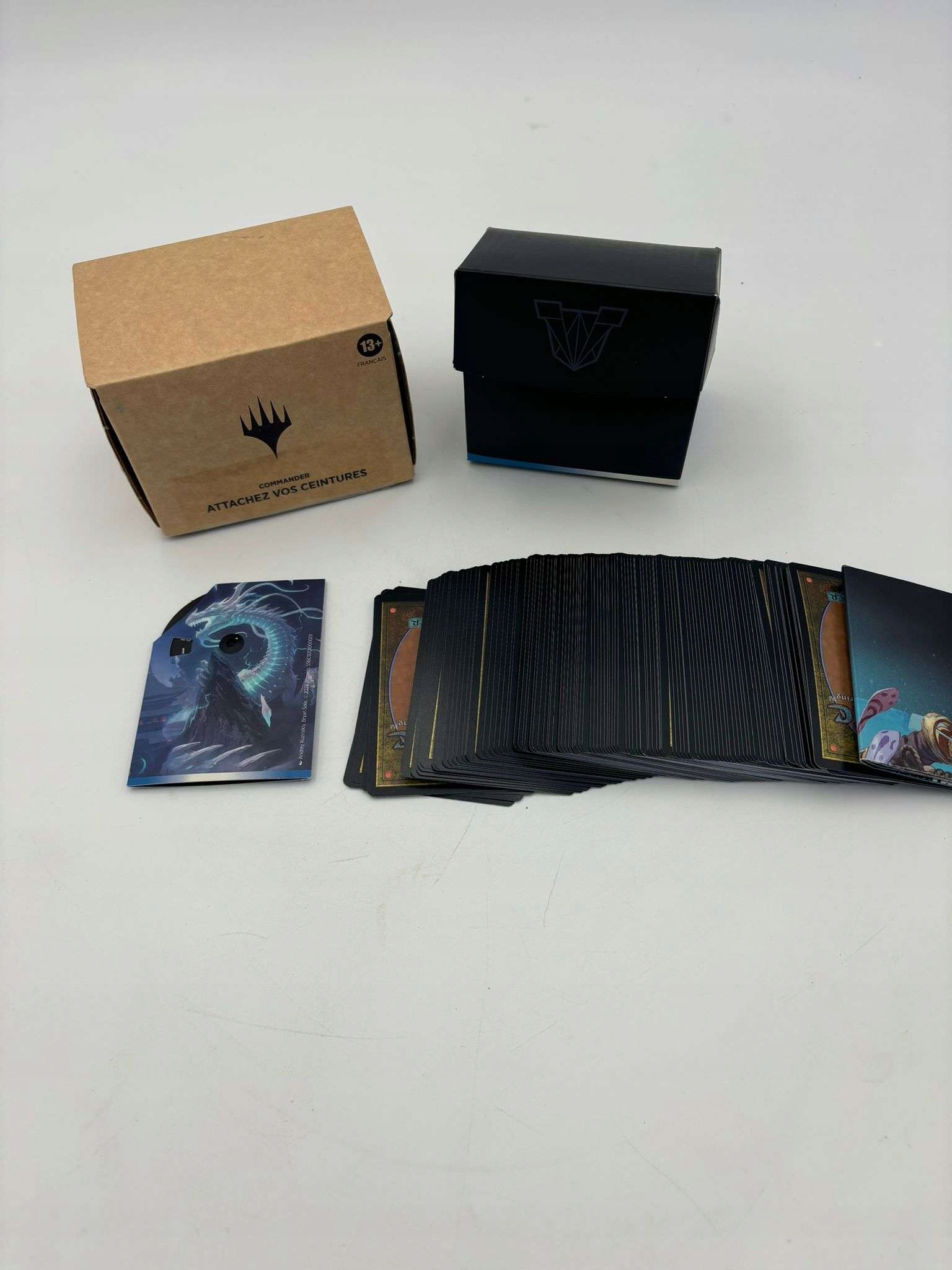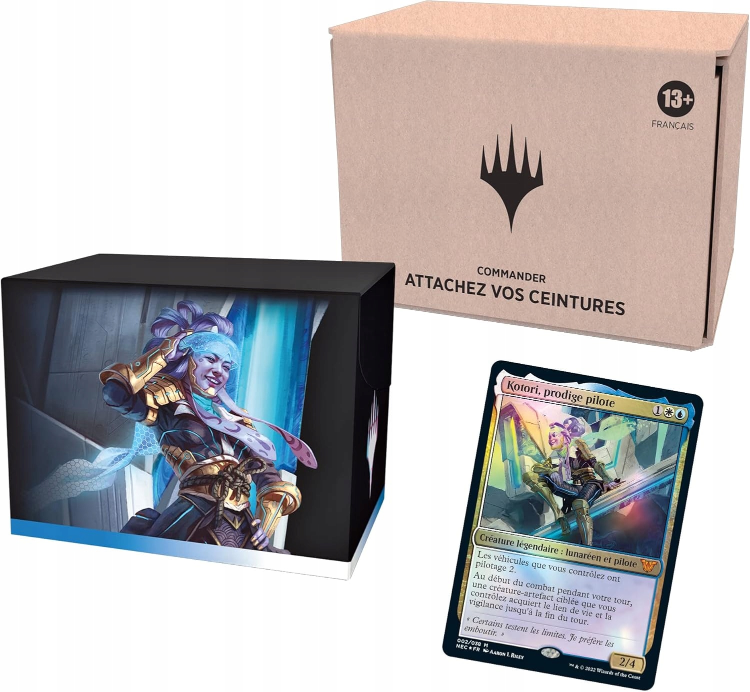 Эта минималистичная версия дополнительной колоды Commander Buckle Up Kamigawa: Neon Dynasty имеет то же содержимое, но в упаковке меньшего размера. В каждой коробке находится 1 готовая к игре колода из 100 карт Magic (2 традиционных премиум-класса, 98 не премиум-класса), 1 Super Premium Presentation Commander (один экземпляр карты «Командир» на картоне с премиальной текстурой на рамке и иллюстрацией), 10 двусторонние жетоны, 1 коробка колоды (вмещает 100 карт с защитными чехлами), 1 метр очков жизни и 1 справочный лист