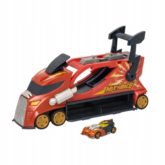 Необычный T-Racers Mix'n Race Truck Truck имеет 3 функции и 1 эксклюзивную T-Racer Mix 'N Race' N Races для сборки автомобилей, запуска, чтобы запустить их и место внутри максимум 7 автомобилей.