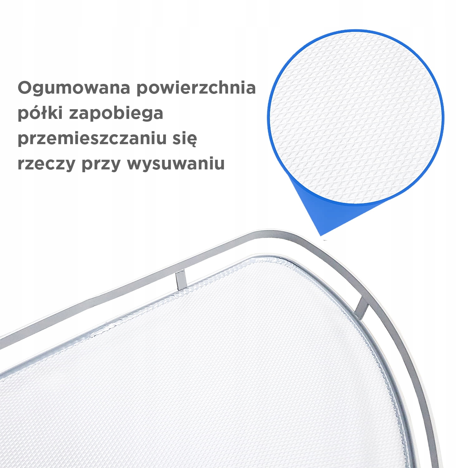 Угловая грузовая корзина оснащена новым круглым рейлингом вокруг полки и противоскользящим ковриком, который предотвращает перемещение находящихся на ней предметов при выдвижении.