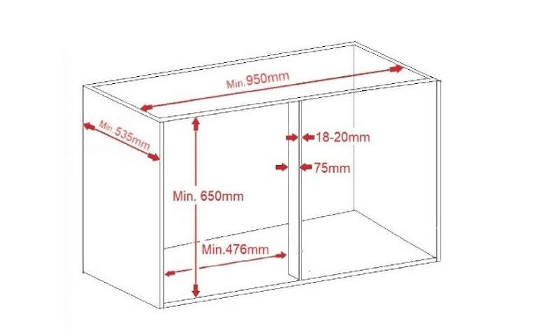 - Рекомендуемая ширина корпуса: мин 950 мм