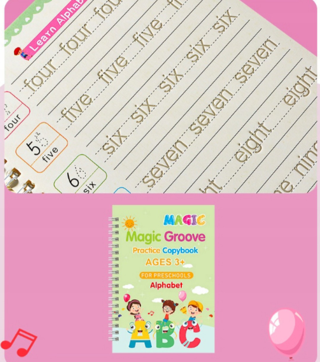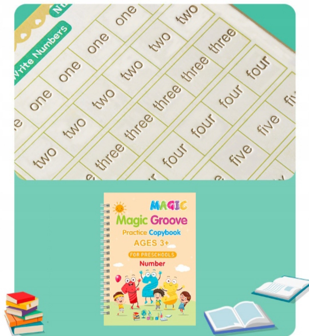 Magic Groove Набор из 4 ноутбуков - идеальный инструмент для детей, которые учатся писать буквы, числа и рисовать животных. Эти ноутбуки разработаны таким образом, что помогает формировать навыки написания и рисования творческим и интерактивным способом