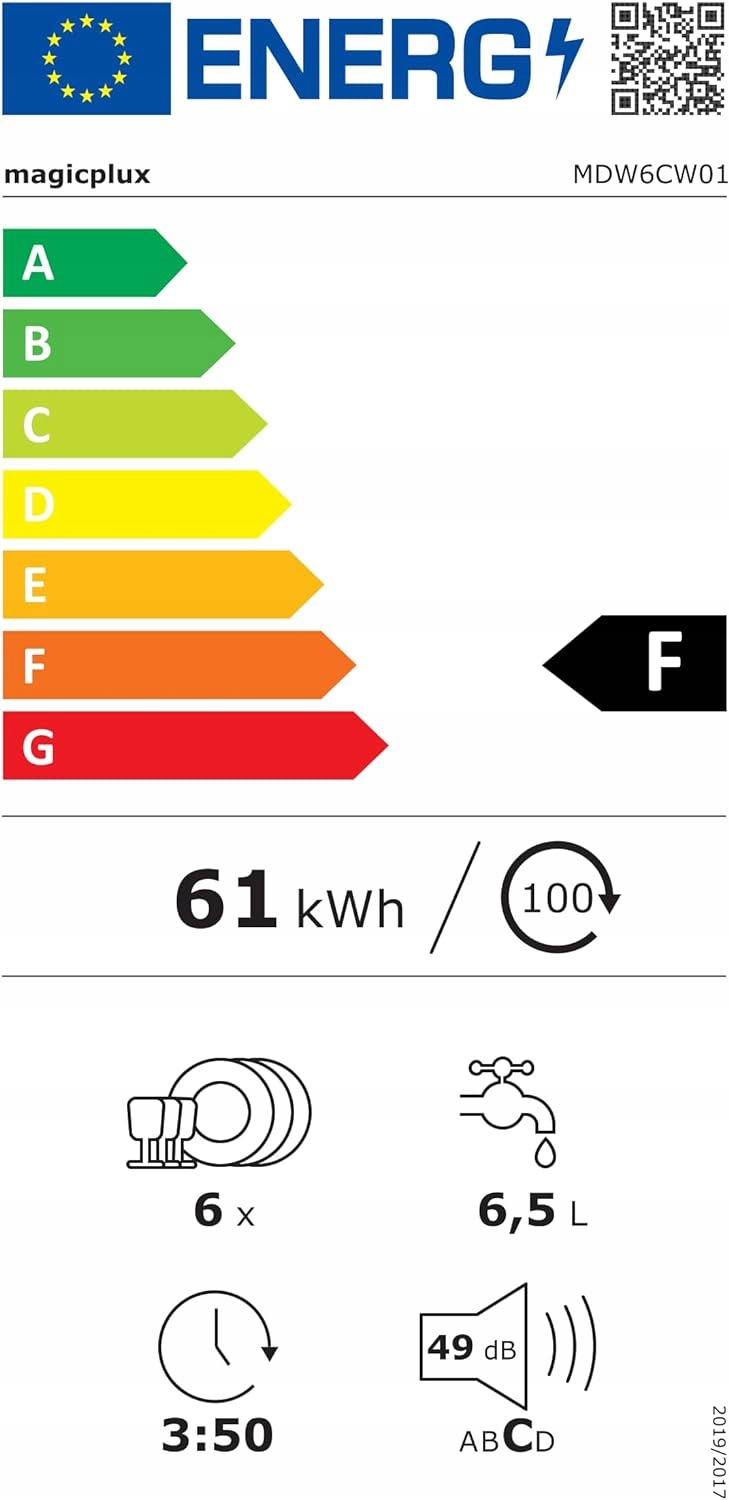 Magicplux Mini Dishiphere 55 см для 6 комнат, 7 + 1 программы, выбор времени, самооценка, для небольших квартир, портативное мини -блюдо с водным соединением, белое h1>