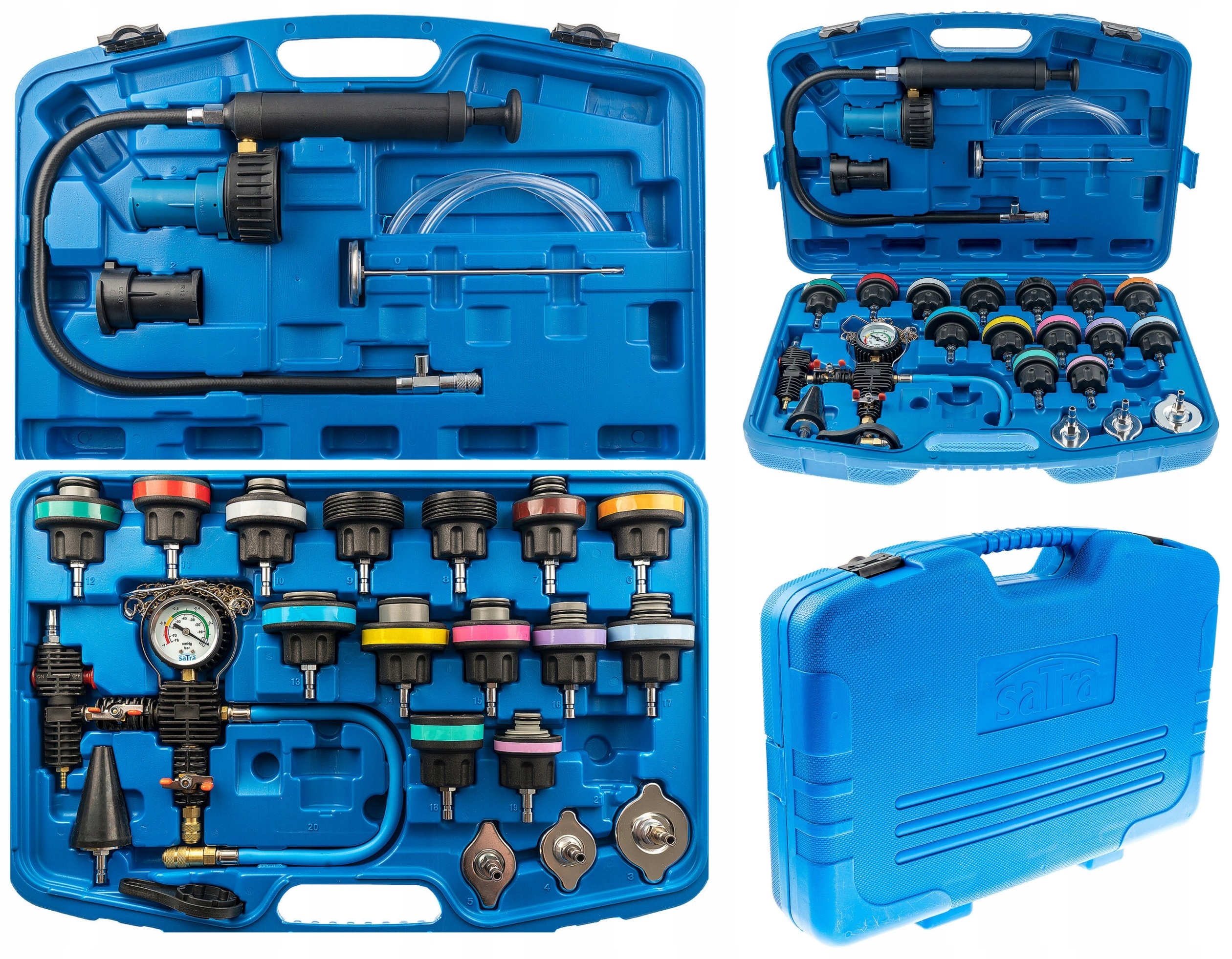 Набор из 27 предметов для проверки герметичности радиатора и быстрой замены охлаждающей жидкости.
