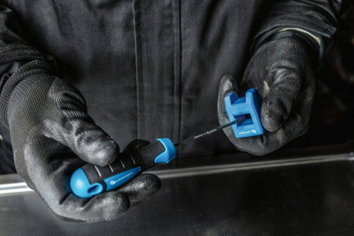 Устройство для намагничивания и вращающихся отверток, винтов, пинцета и других железных сплавов. Он работает отлично, где бы то ни было, чтобы использовать магнетизм, например, Потянув не стригнутый винт, гайку из плотного места, например, в машине с отверткой или наконечником; или его отсутствие, например При работе с точной электроникой, когда нагрузка не может быть передана. Сильный магнит, встроенный в лодыжку, также поможет очистить рабочее место металлических заявок.