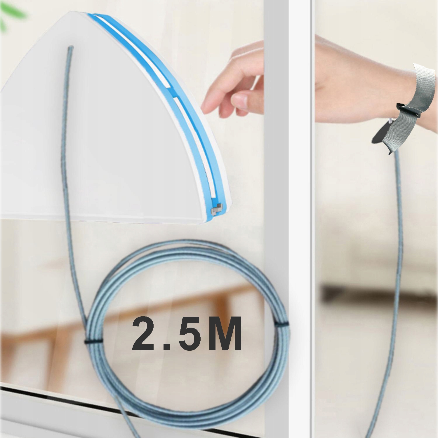 В комплект входит стальной страховочный трос длиной 2,5 м, изготовленный из стали и очень прочный. Очень большой и толстый, не нужно лазить, средство для мытья окон не достигнет самого дальнего угла стекла в вашем доме и не почувствует. Вам также не нужно беспокоиться о безопасности на высоте.