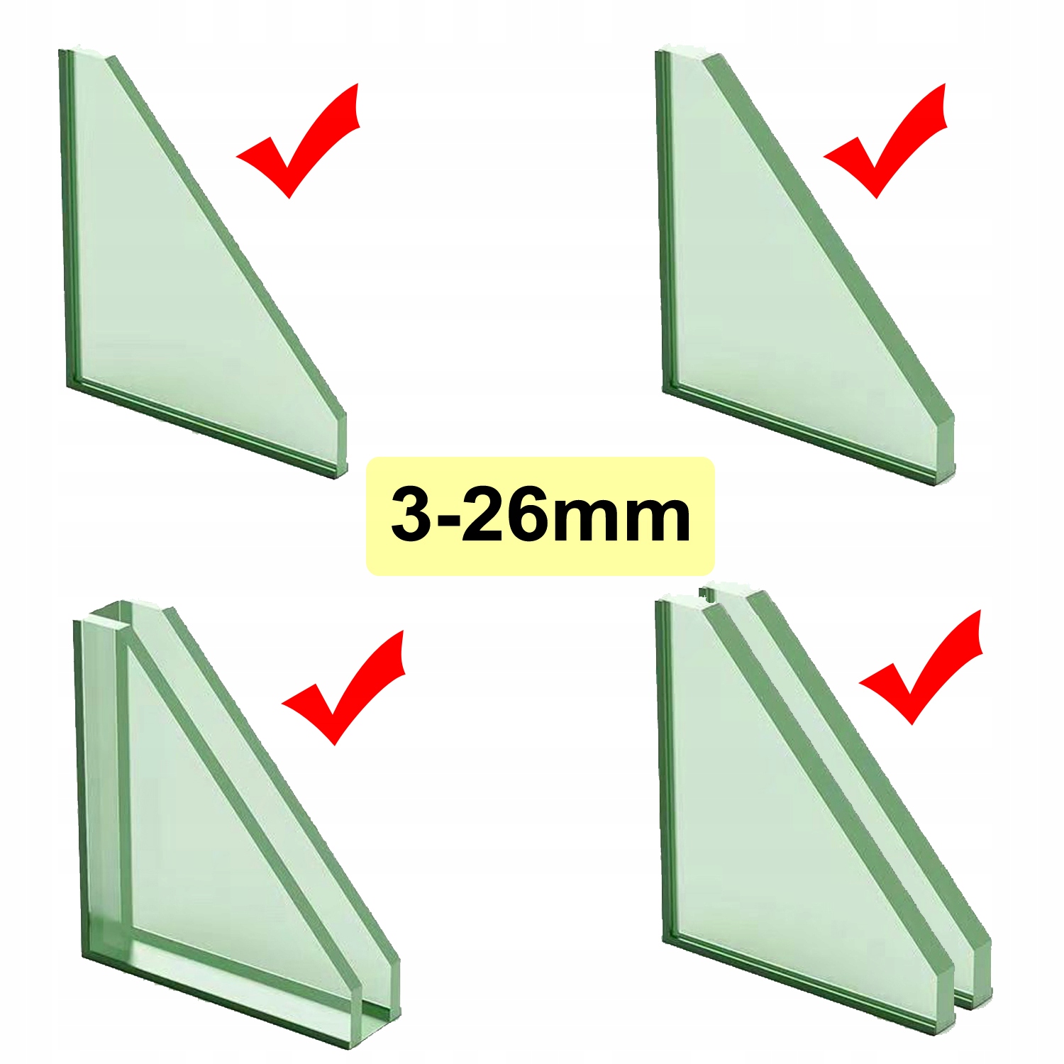 <ул>Подходит для стекла толщиной 3–26 мм — одинарного стекла, толстого одинарного стекла, окон с двойной створкой, окон с толстой двойной створкой.