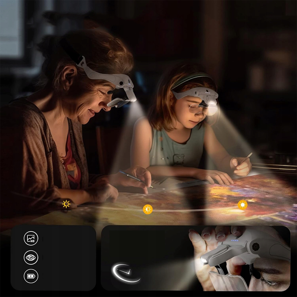 Бесплатные руки - Лупа как аксессуар для рисования с бриллиантами, удобно лежит на голове, оставляя бесплатные руки. Это предотвращает дрожь, вызванную усталостью или нестабильностью рук, и обеспечивает четкий и стабильный вид, благодаря которой работа становится проще и более эффективной.