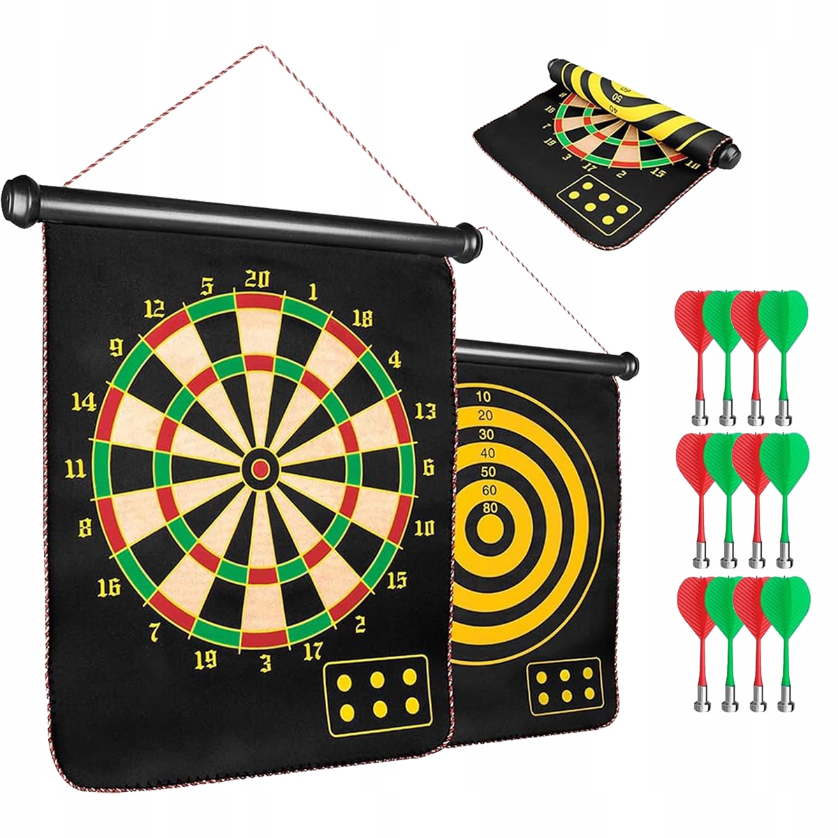 Одна доска для дартса удваивает удовольствие: на одной стороне этой магнитной доски для дартса находится стандартный центр для подростков, а на другой — игры с очками для детей. Благодаря этому вы можете легко менять дротики и выбирать любимые игры своих детей.