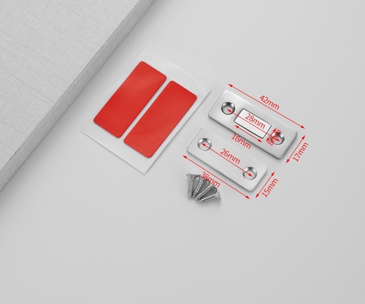 - Просто установите магнит в шкаф без бурения на винтах с клей. Защитите свой шкаф или дверь перед повреждением. (Закрыть и открыть дверь через 12 часов, чтобы клей хорошо прилипал к поверхности.)