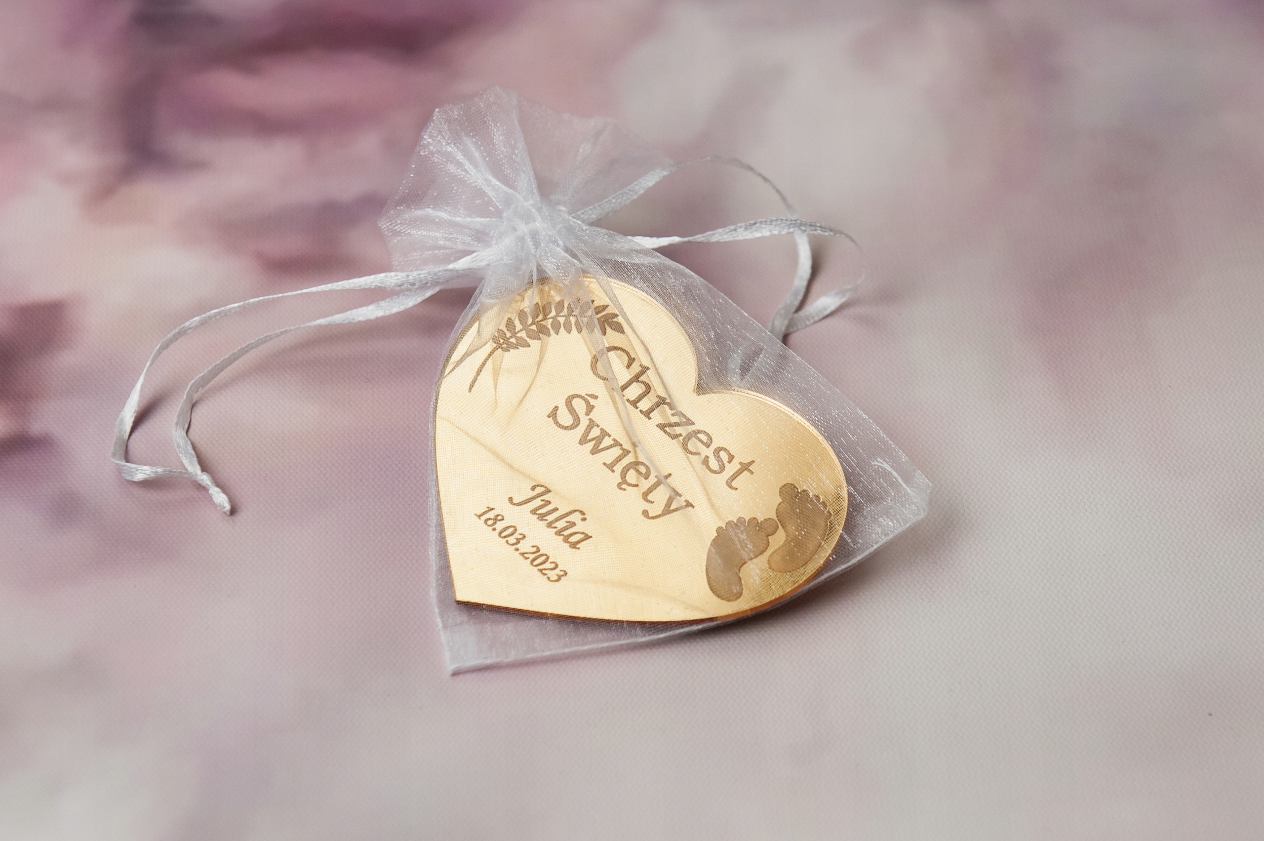 Магниты - красивый и оригинальный сувенир и благодарность гостям за участие в празднике. Изделие изготовлено методом лазерной резки из золотого зеркала. Каждое изделие выгравировано, поэтому при размещении заказа укажите: ИМЯ и ДАТУ.