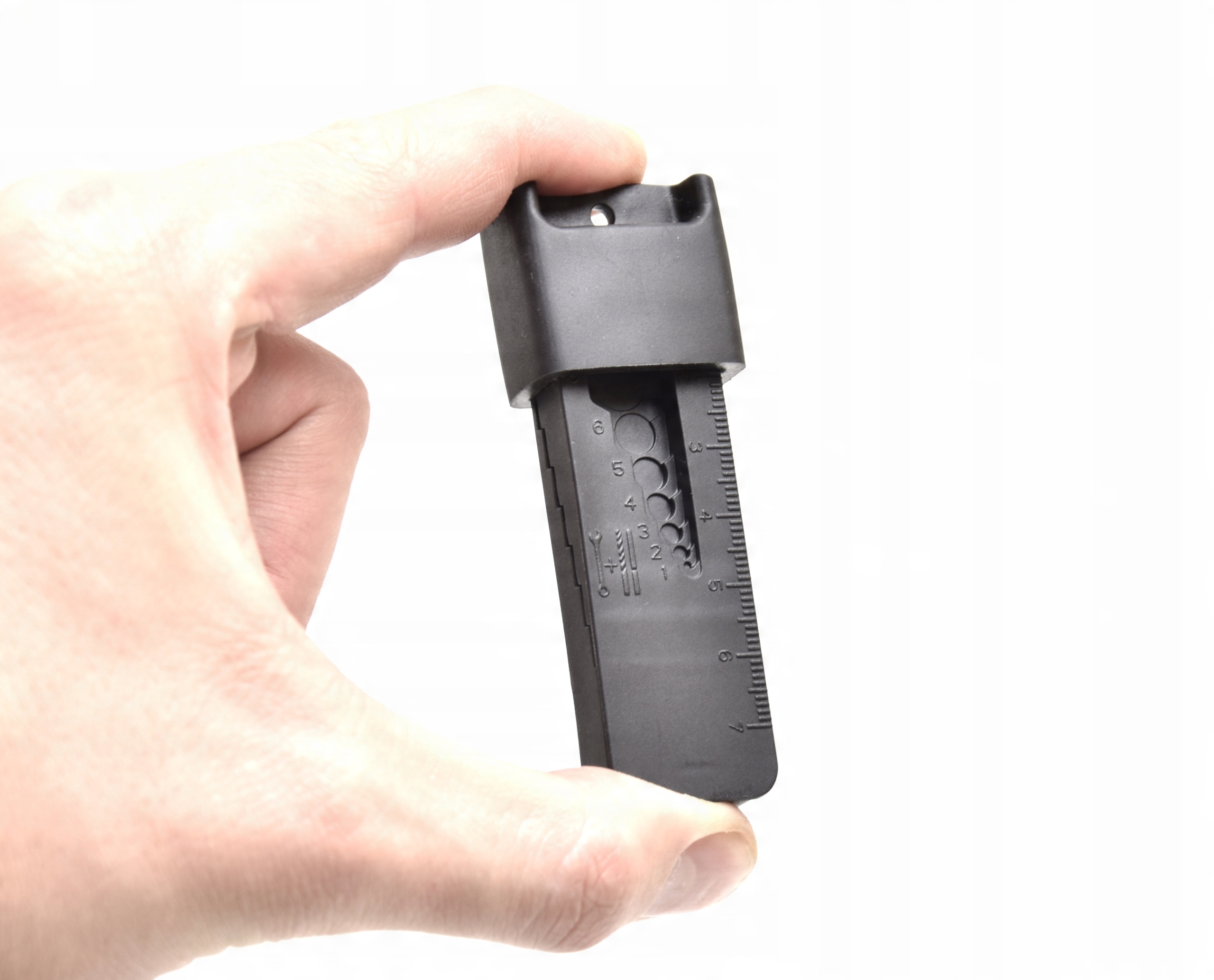 - Мини-измерительный прибор на брелке, используемый для определения размеров зазоров или зазоров между соседними поверхностями и многого другого!