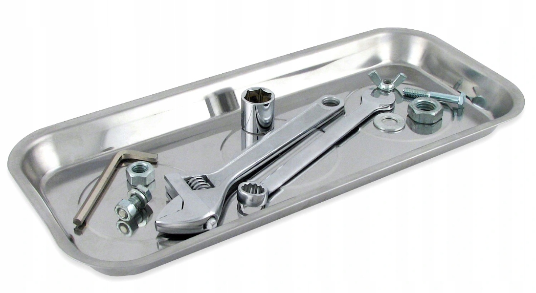 Продукт позволяет хранить различные типы металлических элементов во время ремонта. Магниты позволяют прикрепить миску в удобное место и закрепить чашу и детали, хранящиеся в ней от падения и рассеяния. Магнитные миски защищены пластиком, который защищает лак от царапин. Чаша изготовлена из двойной поверхности листа.