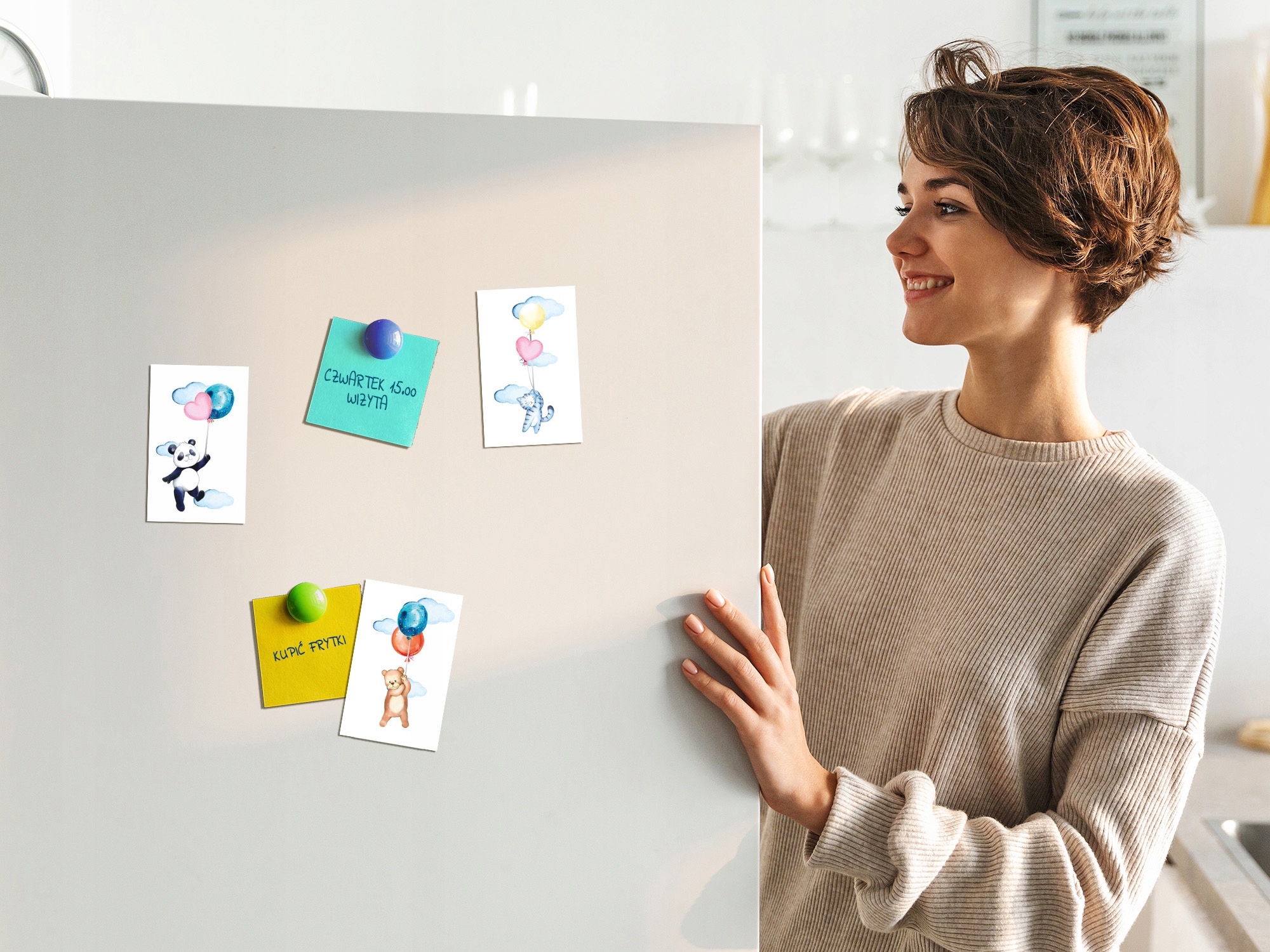 Магнит из магнитной фольги с мотивом зайчика с воздушными шарами отлично подойдет в качестве декоративного элемента на холодильник, классную доску или сухую. - стереть маркеры.