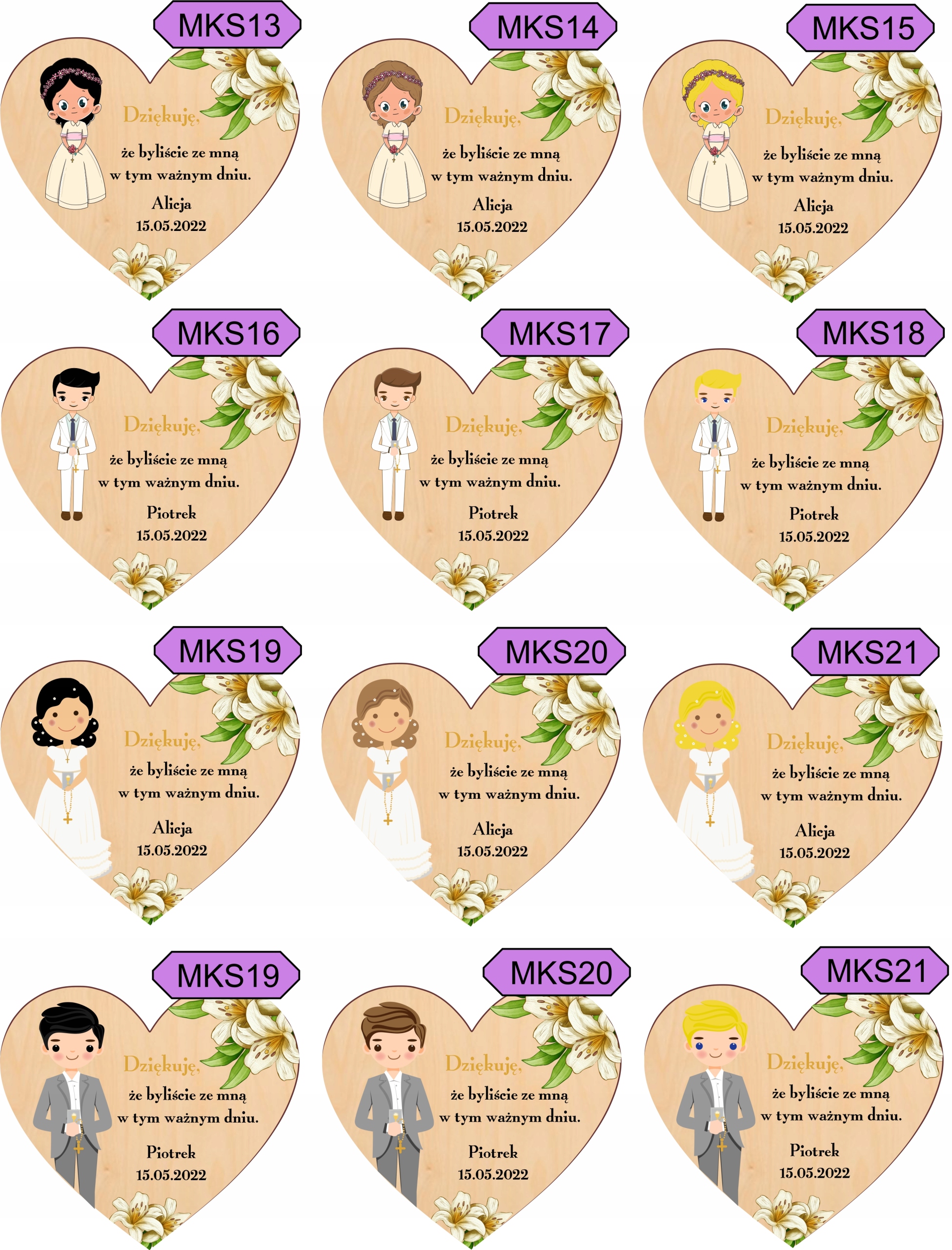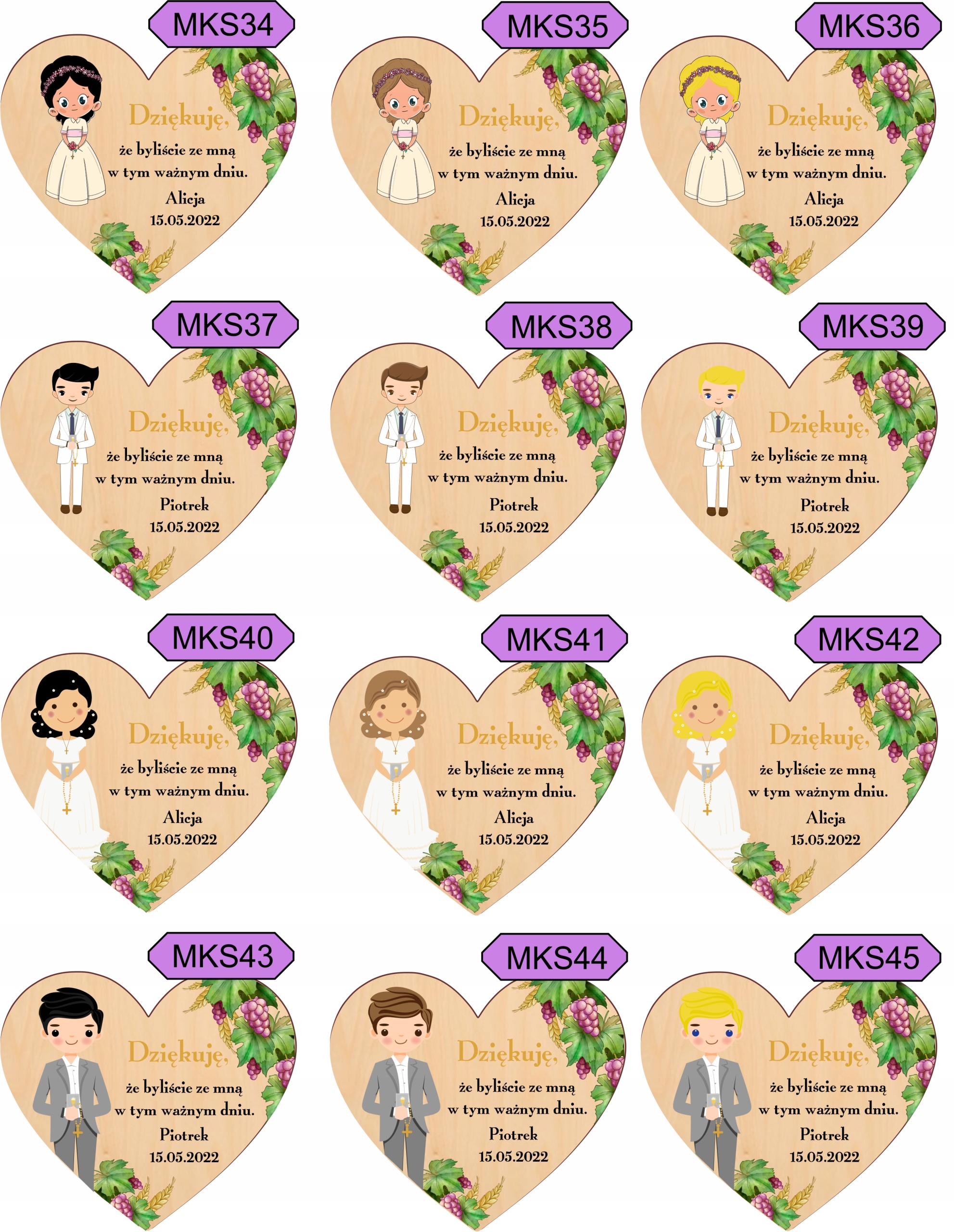 Красивый деревянный магнит в качестве благодарственного письма гостям Первого причастия