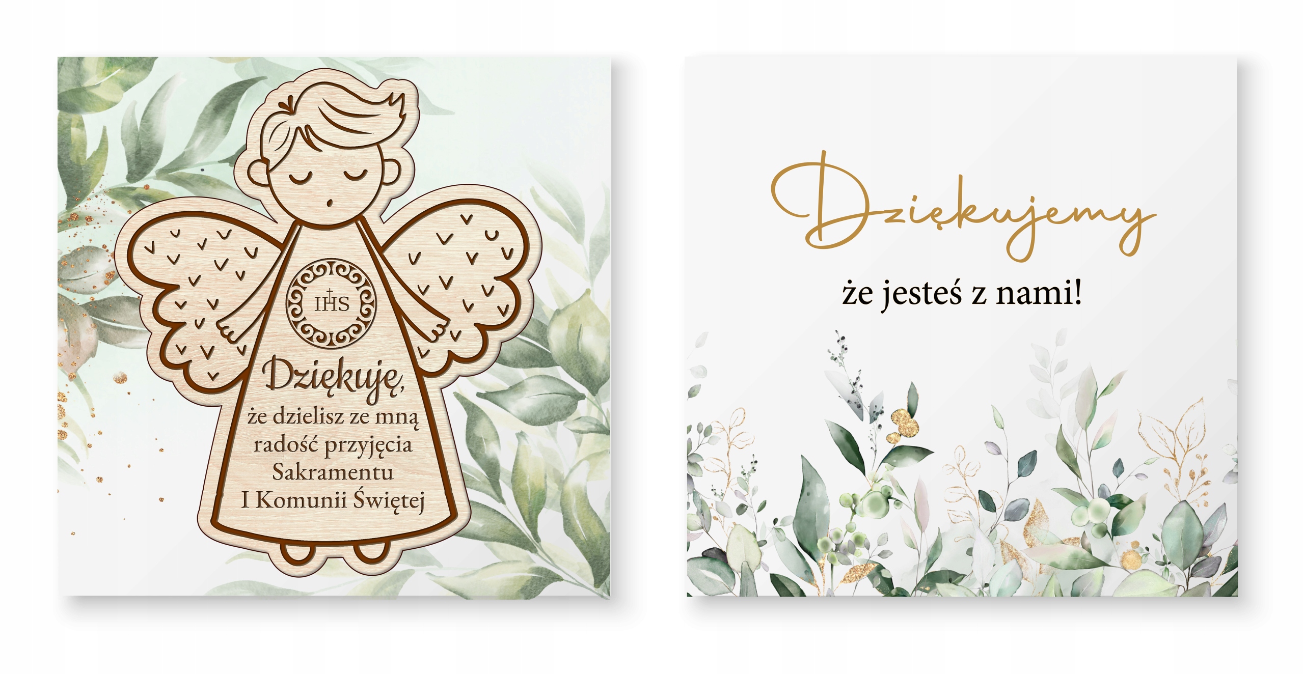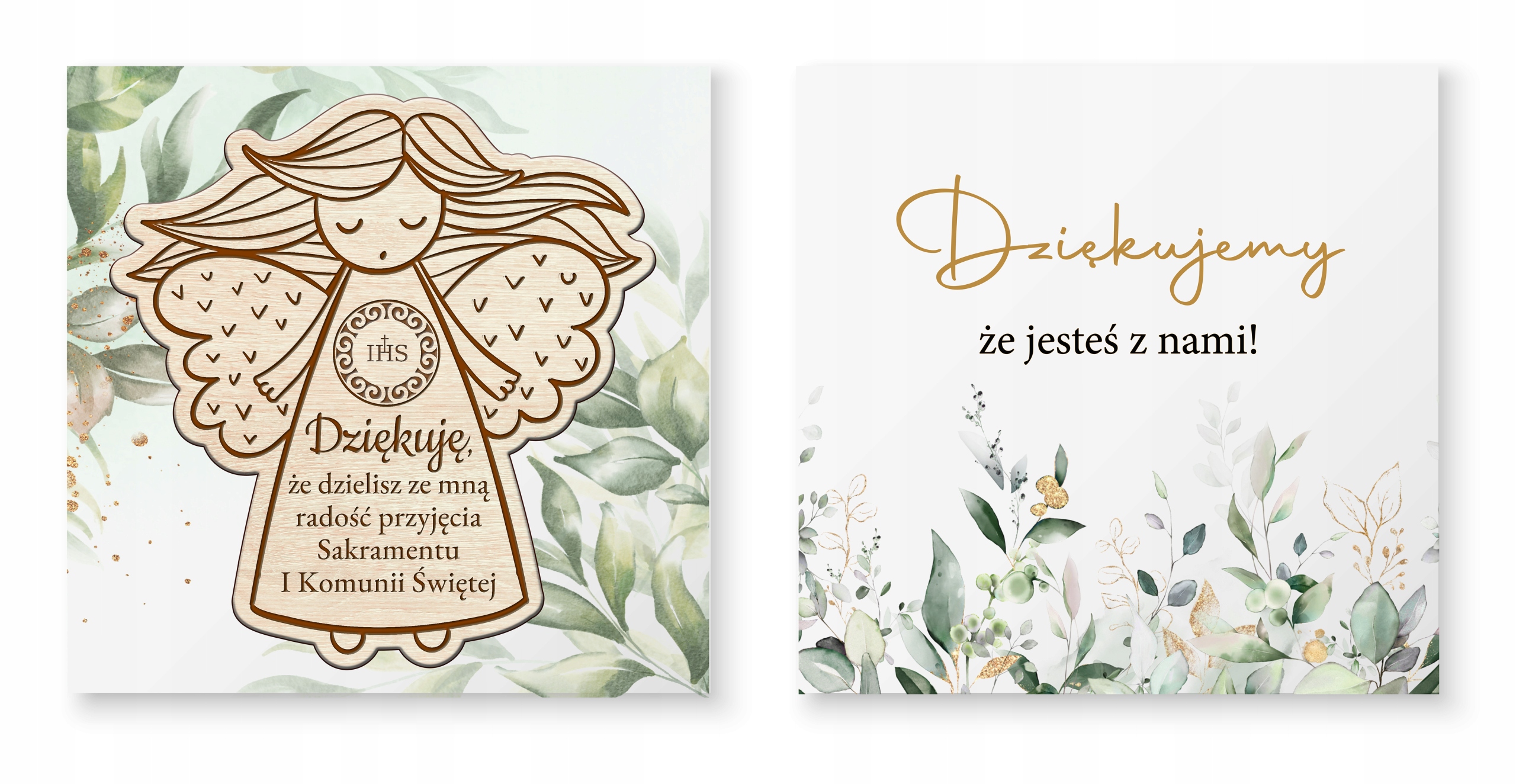 Магнит упакован в прозрачный целлофановый пакет, помещенный на жесткий вкладыш с печатью с обеих сторон. Спереди (под ангелочком) растительный мотив, сзади надпись: Спасибо, что вы с нами!