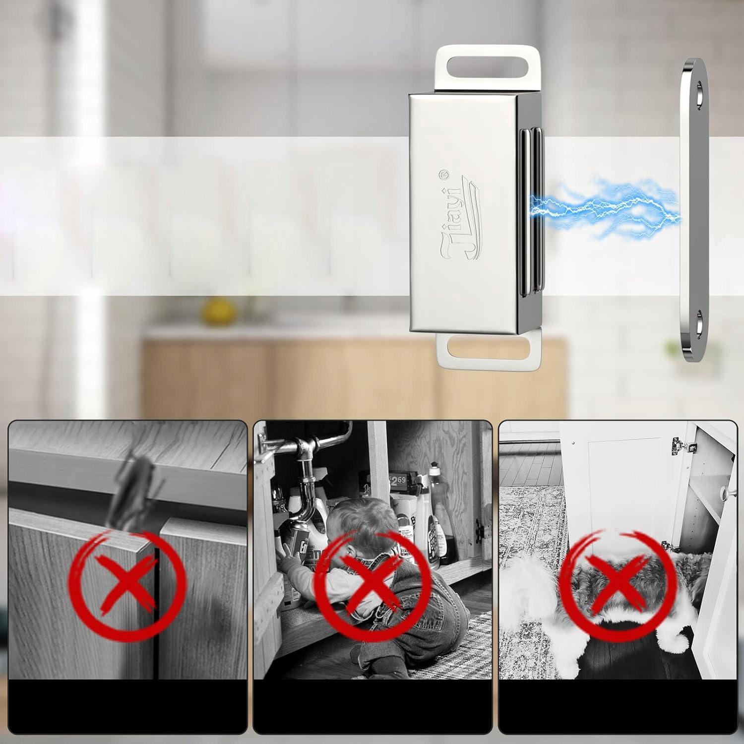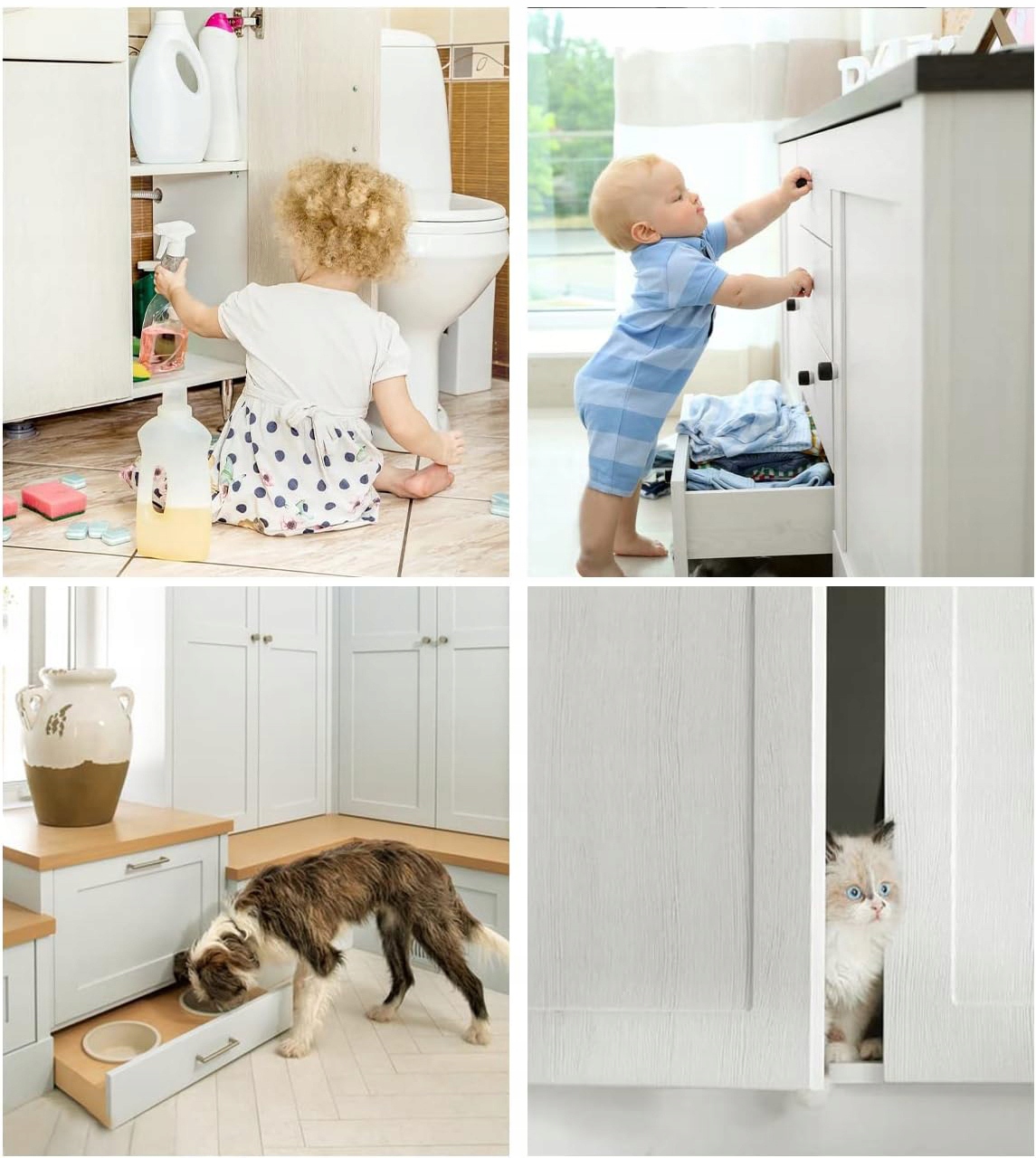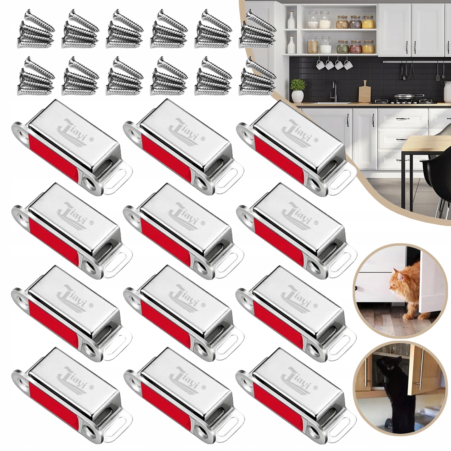 👍👍👍 Мощная магнитная сила: Каждое крепление содержит один магнит весом 6 кг, который удерживает шкаф, дверцы ящика, французские двери или кладовая надежно закрыты. Подходит для дверей, где защелка или петля бесполезны. Также идеально подходит для защиты вашего питомца от взлома вашего шкафа.