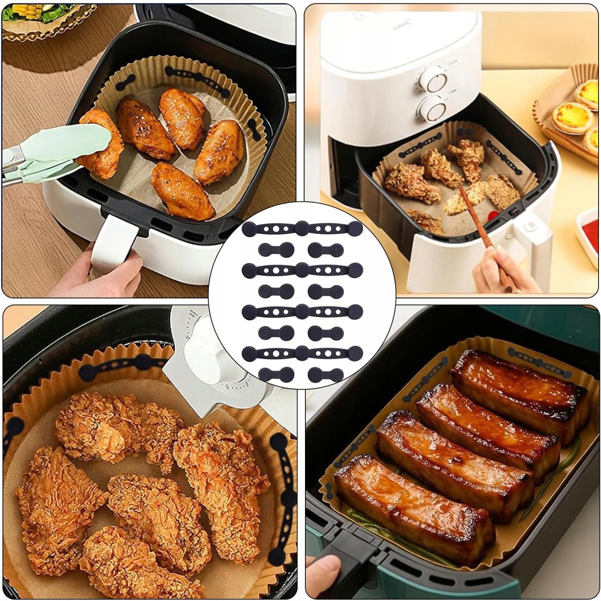 ✔️【Предотвратите ожоги】: Магнитный силиконовый зажим для аэрофритюрницы специально разработан для фиксации пергаментной бумаги в аэрофритюрнице. Это эффективно предотвращает прилипание одноразовой бумаги к пище или контакт с нагревательным элементом, что может привести к ее возгоранию. Его конструкция обеспечивает более безопасное приготовление пищи и предотвращает ненужную опасность возгорания.