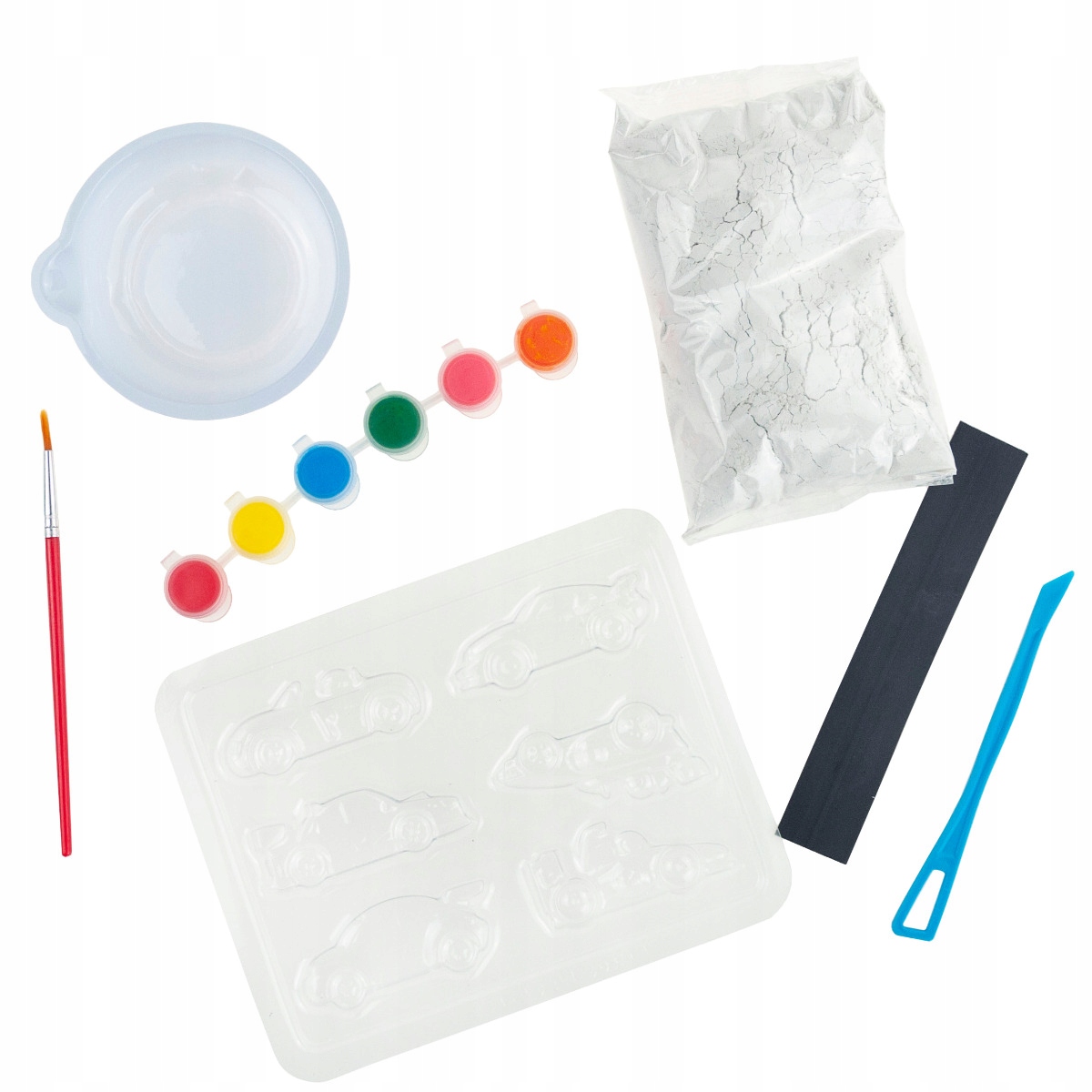 ✅ Комплект: В комплект входят все необходимые аксессуары для создания собственных магнитов. В набор входит гипс, 6 цветов краски, кисточка, 6 формочек различной формы для автомобилей, миска, лопаточка и магнитная полоса.