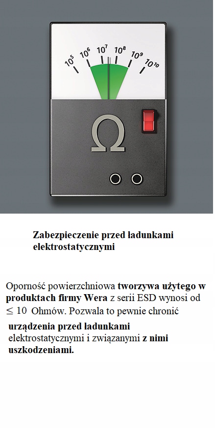- Электростатически безопасный инструмент благодаря поверхностному сопротивлению ≤ 10 Ом