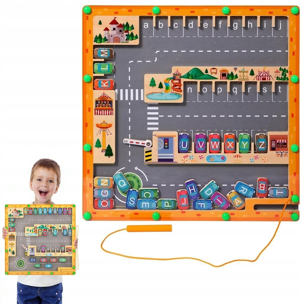 МАГНИТНЫЙ АЛФАВИТНЫЙ ЛАБИРИНТ МОНТЕССОРИ ДОСКА ПАРКОВКА ДЕРЕВЯННАЯ ИГРА XL
