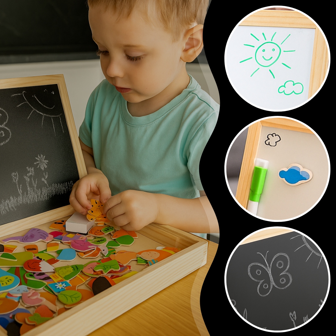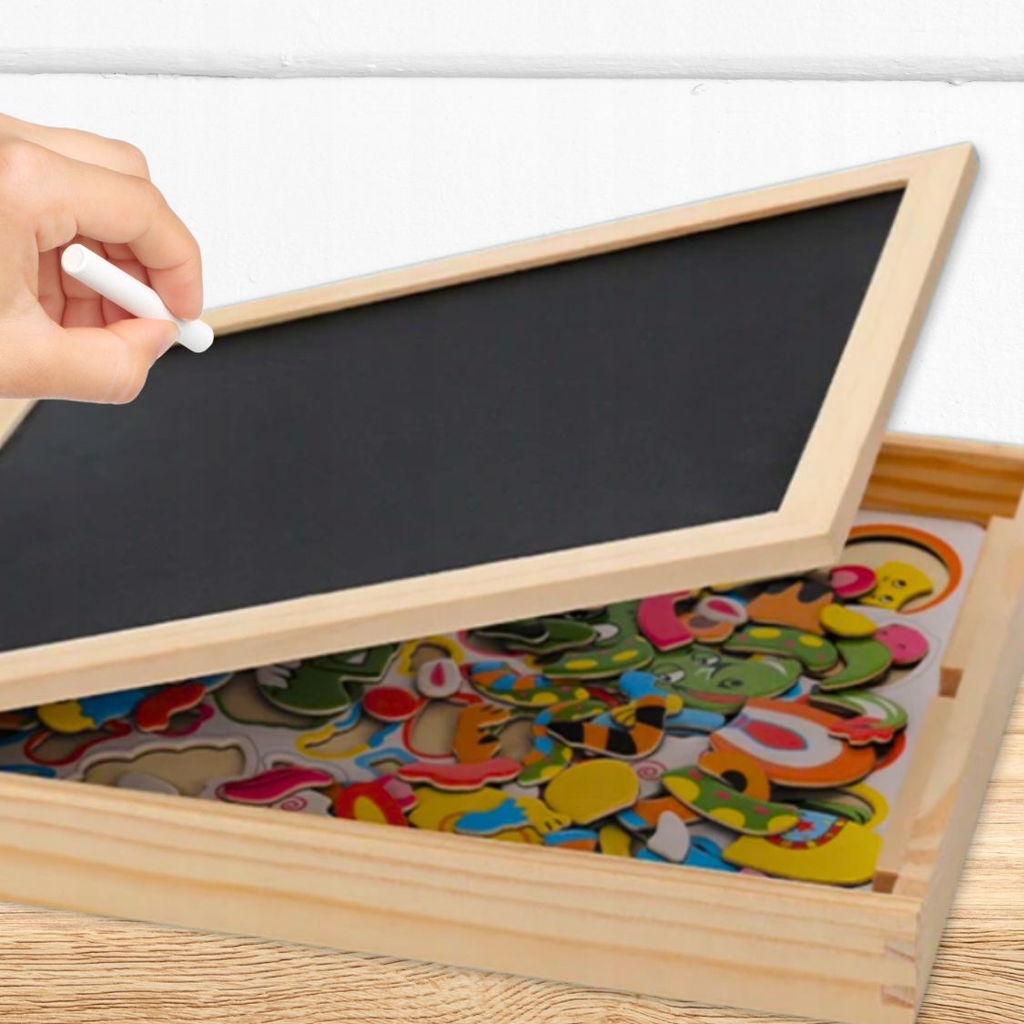 🎨 ДЕРЕВЯННАЯ МАГНИТНАЯ ДОСКА 120 ЭЛЕМЕНТОВ – ДВУХСТОРОННЯЯ С ПАЗЗЛАМИ