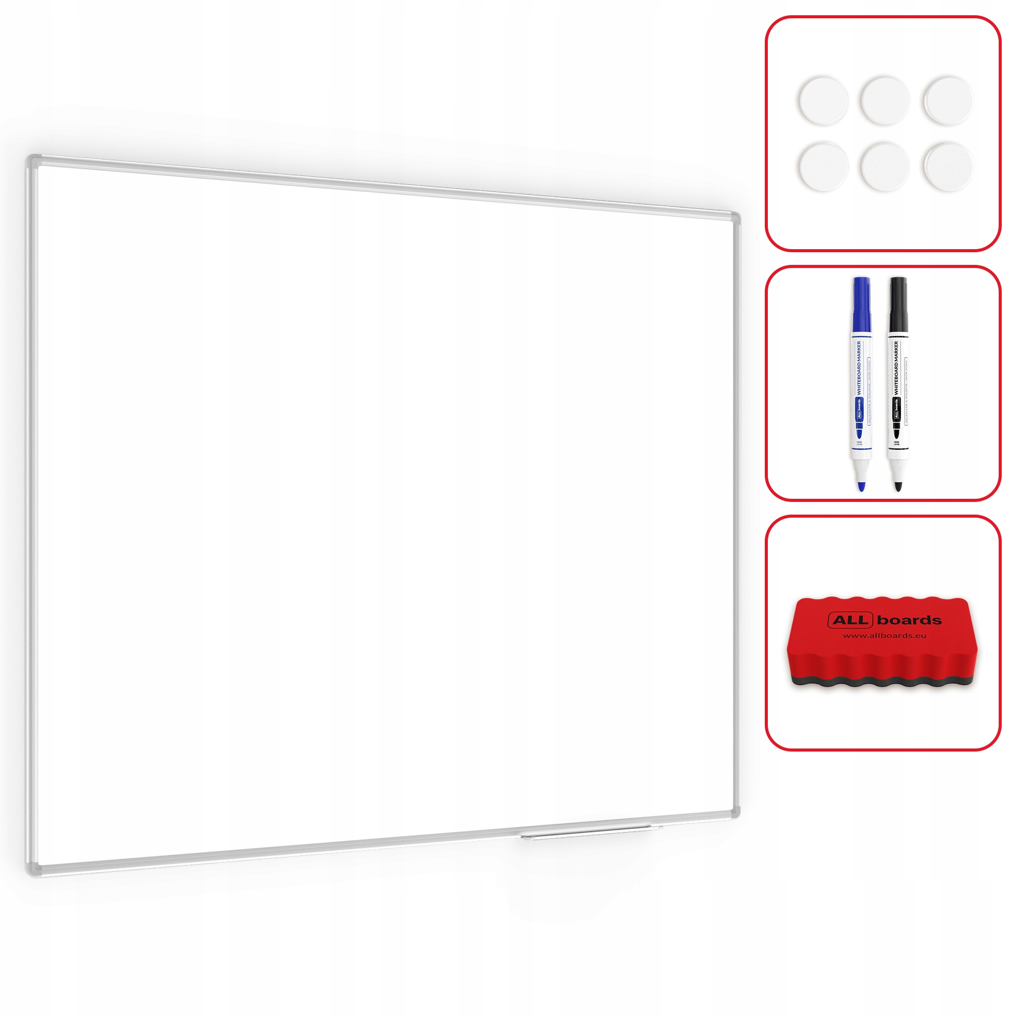 - НАБОР - вместе с доской в комплект входит полное оборудование для немедленного использования: монтажный комплект, полка для принадлежностей, губка, набор магнитов и набор маркеров.