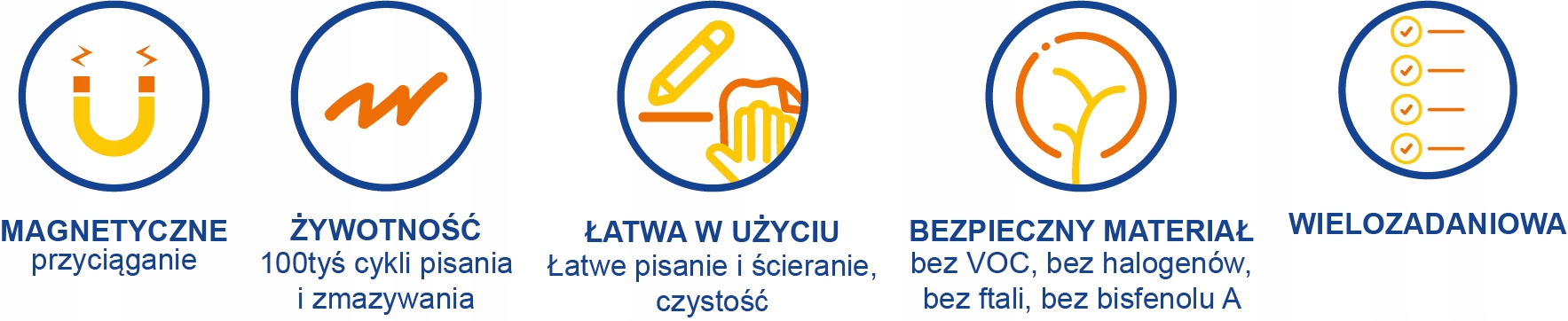 Ферромагнитная пленка для сухого стирания соответствует европейским стандартам REACH, в частности EN71-3 в отношении миграции некоторых химических элементов.