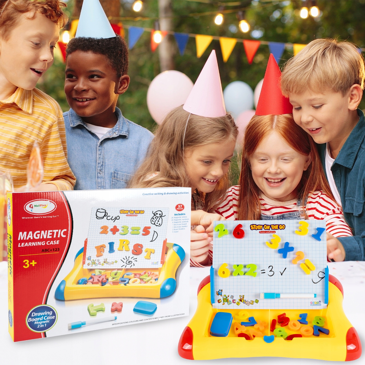 СУПЕР ОБРАЗОВАТЕЛЬНЫЕ ФУНКЦИИ: - учит буквы и цифры, - учит основным математическим действиям, - учит логическому мышлению, - развивает навыки ручного и пальчикового движения, - стимулирует воображение - ИГРУШКА 2 В 1: магнитная и доска для письма