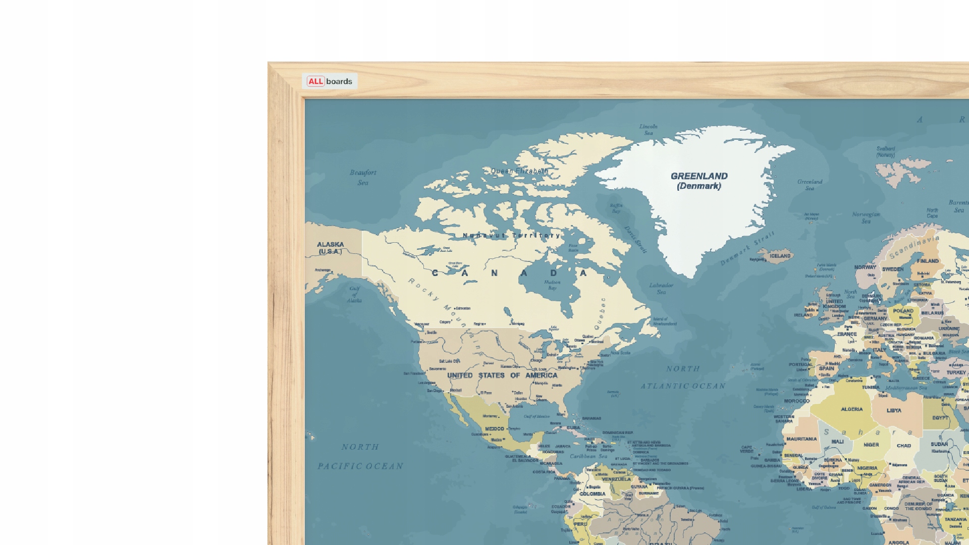 - Surface - красочная графика напечатана на магнитной поверхности. Вся структура заключена в деревянную раму. Текст на карте написан на английском языке. Graphics