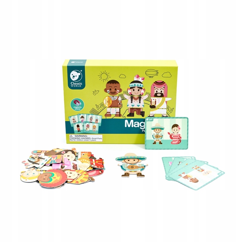 Набор включает в себя элементы 60 , чтобы организовать людей из разных стран в магнитных странах . доска . Установив персонажей, вы можете следовать за картой или создать свою собственную версию одежды. Этот набор дает много возможностей и очень весело!