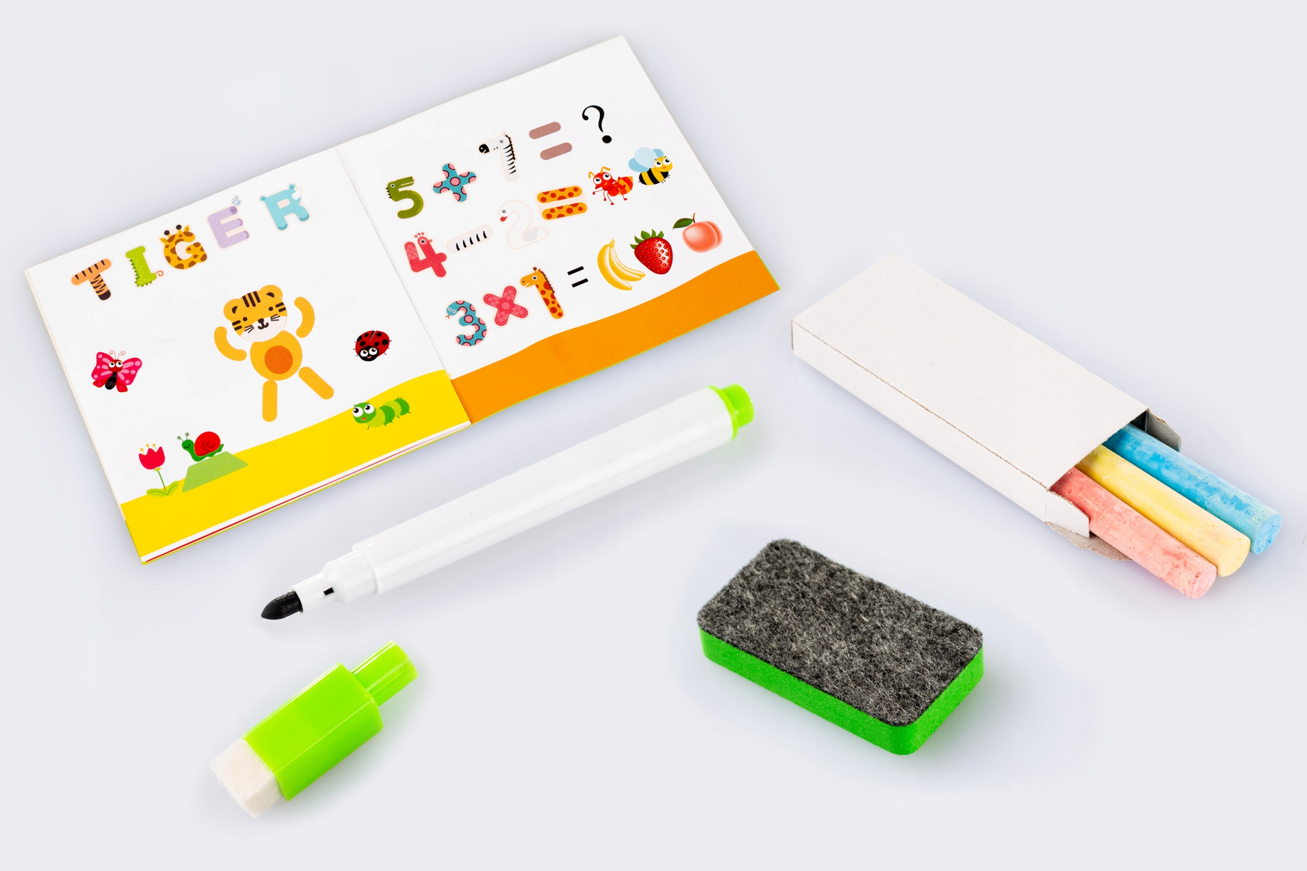 Отличный набор для познавательного и интересного развлечения! Складная деревянная двусторонняя доска и магнитные пазлы. Белая магнитная сторона используется для решения головоломок и письма сухостираемым маркером. Тёмная сторона — это доска, на которой пишут мелом. Каркас и коробка фрезерованы и отполированы - изготовлены из 100% дерева (без искусственных композитов).