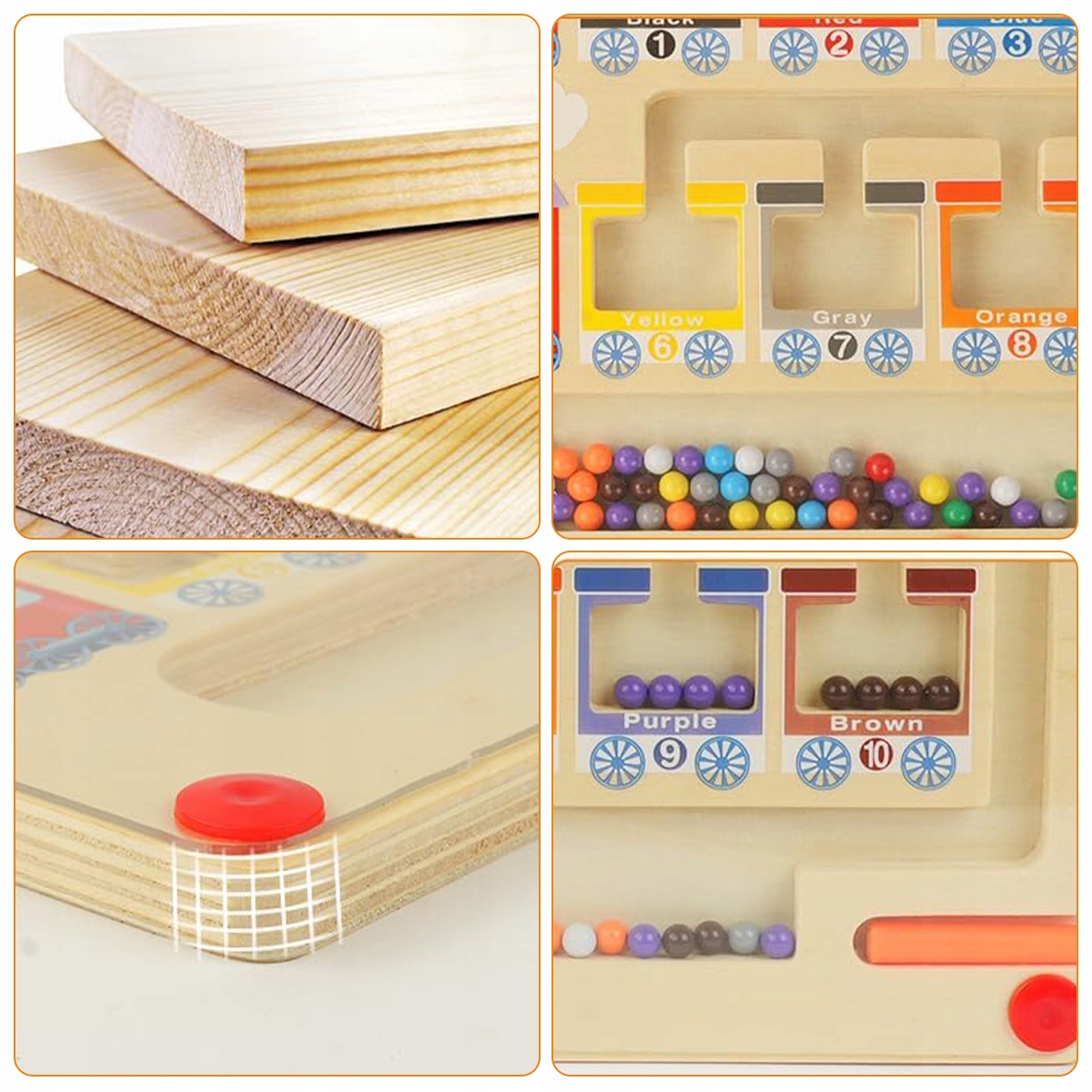 Игра-сортировщик изготовлена из натурального дерева и нетоксичной краски на водной основе. Магнитный лабиринт отполирован и гладок, имеет гладкую поверхность и закругленные углы, которые защищают руки вашего ребенка от повреждений. Поверхность нашей магнитной доски изготовлена из прочного прозрачного акрила. Все магнитные бусины прочно вклеены в доску и закреплены 6 гвоздями, что гарантирует сохранность этих магнитных игрушек.