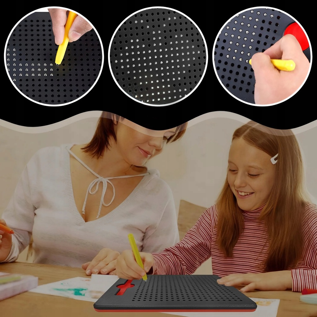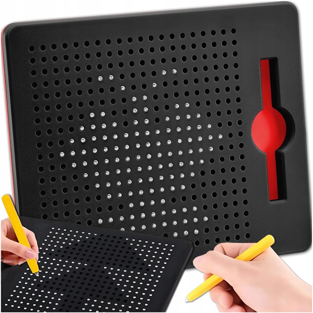➡️ СПЕЦИАЛЬНЫЙ СТИЛУС - оснащенный магнитом, заставляет шарики подниматься и создавать узоры. Благодаря держателю сбоку доски стилус всегда под рукой и не потеряется.