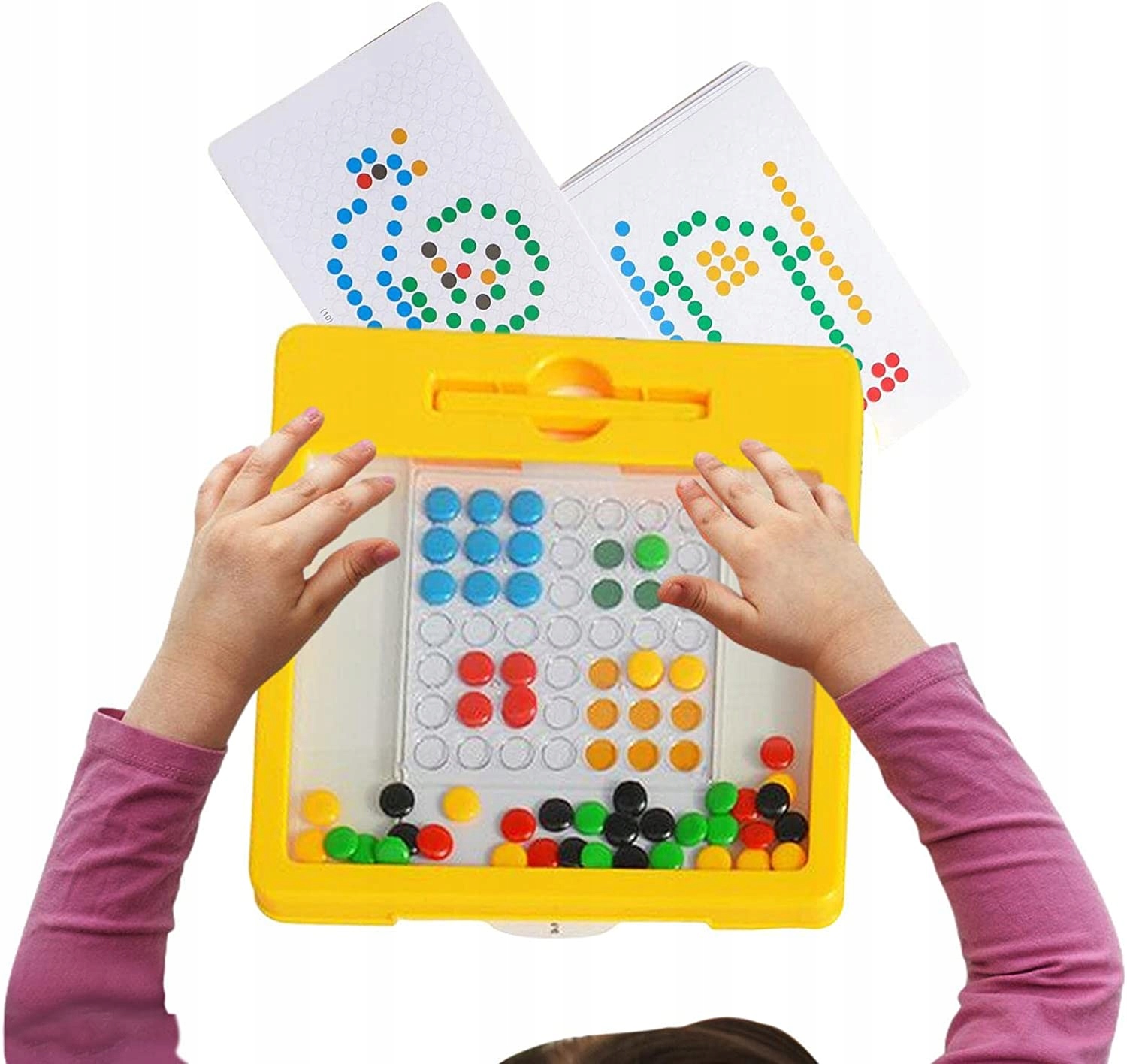 <ул>✔️ Доска позволяет детям развивать моторику, складывая из магнитных блоков различные узоры и изображения. Это отличный способ стимулировать точность движений пальцев и зрительно-моторную координацию. Дети могут создавать свои узоры и изображения, экспериментировать с разными формами и цветами, что развивает их художественные способности и творческое мышление. Это также способствует более активному участию и лучшему приобретению знаний.