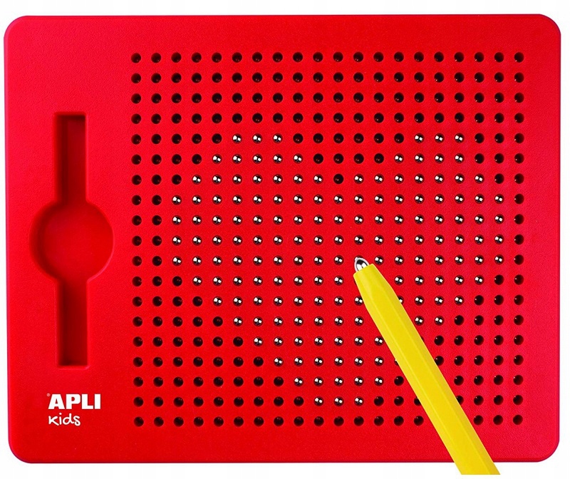 Доска оснащена магнитным стилусом, который притягивает шарики к отверстиям на доске.