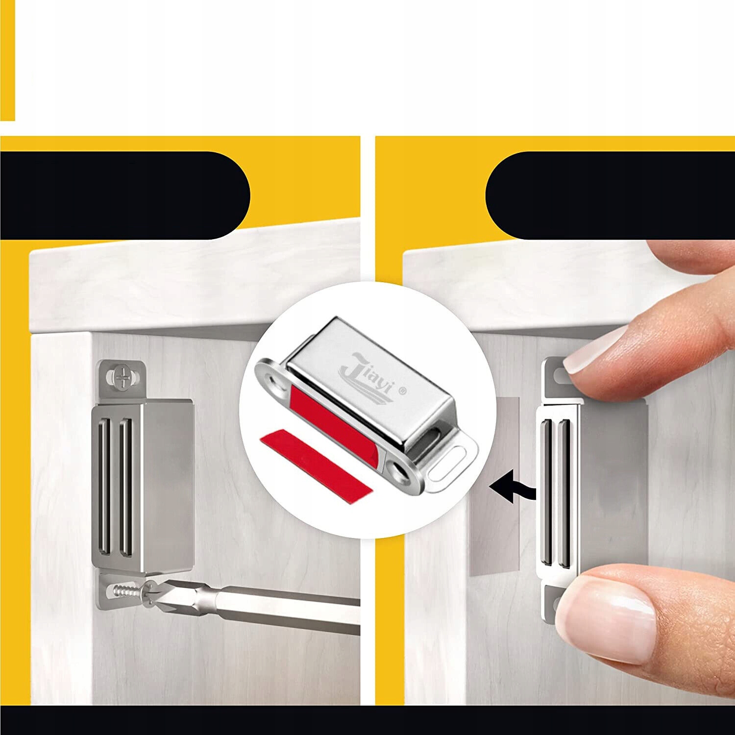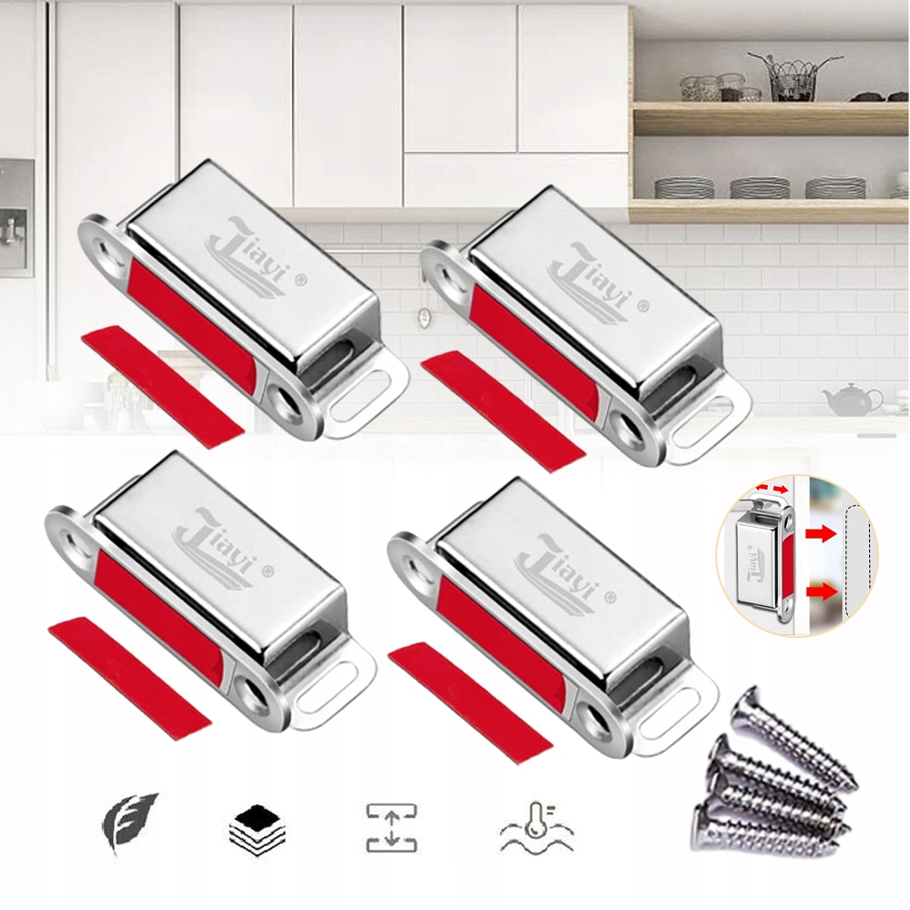 ✅Комплект поставки: 4 магнитных защелки; 16 винтов; 4 двусторонних самоклеящихся пластины