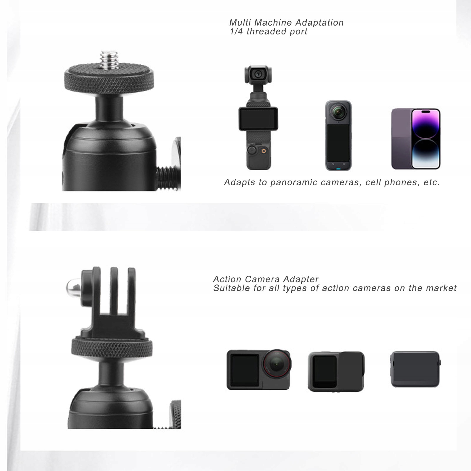 4. Универсальное крепление крепления. Совместимость: разработанная с винтами 1/4 дюйма и двойными когтями для камер действий, это прикрепление позволяет ATUS прикрепить к различным аксессуарам, увеличивая универсальность съемки.